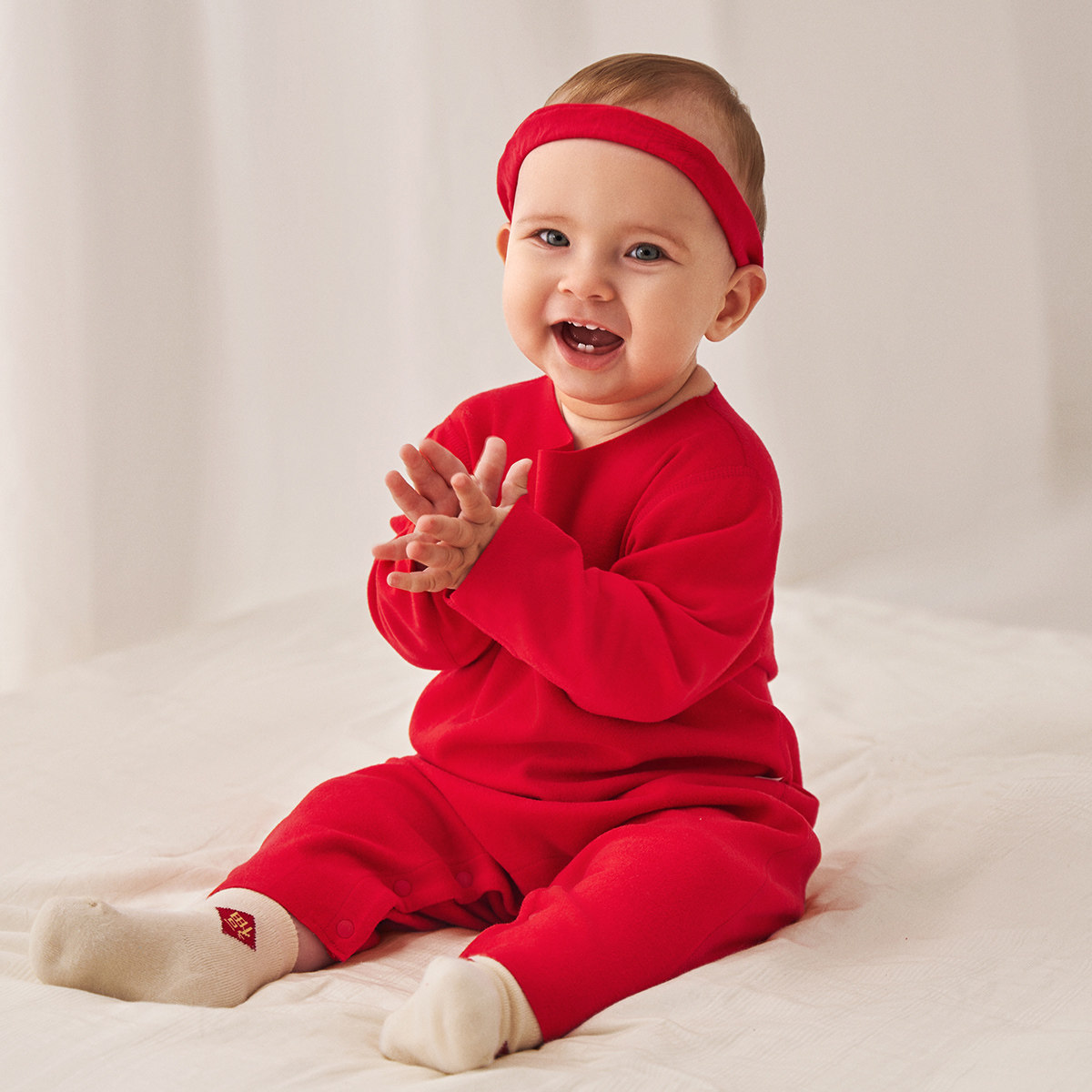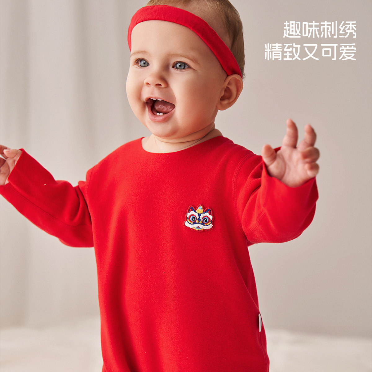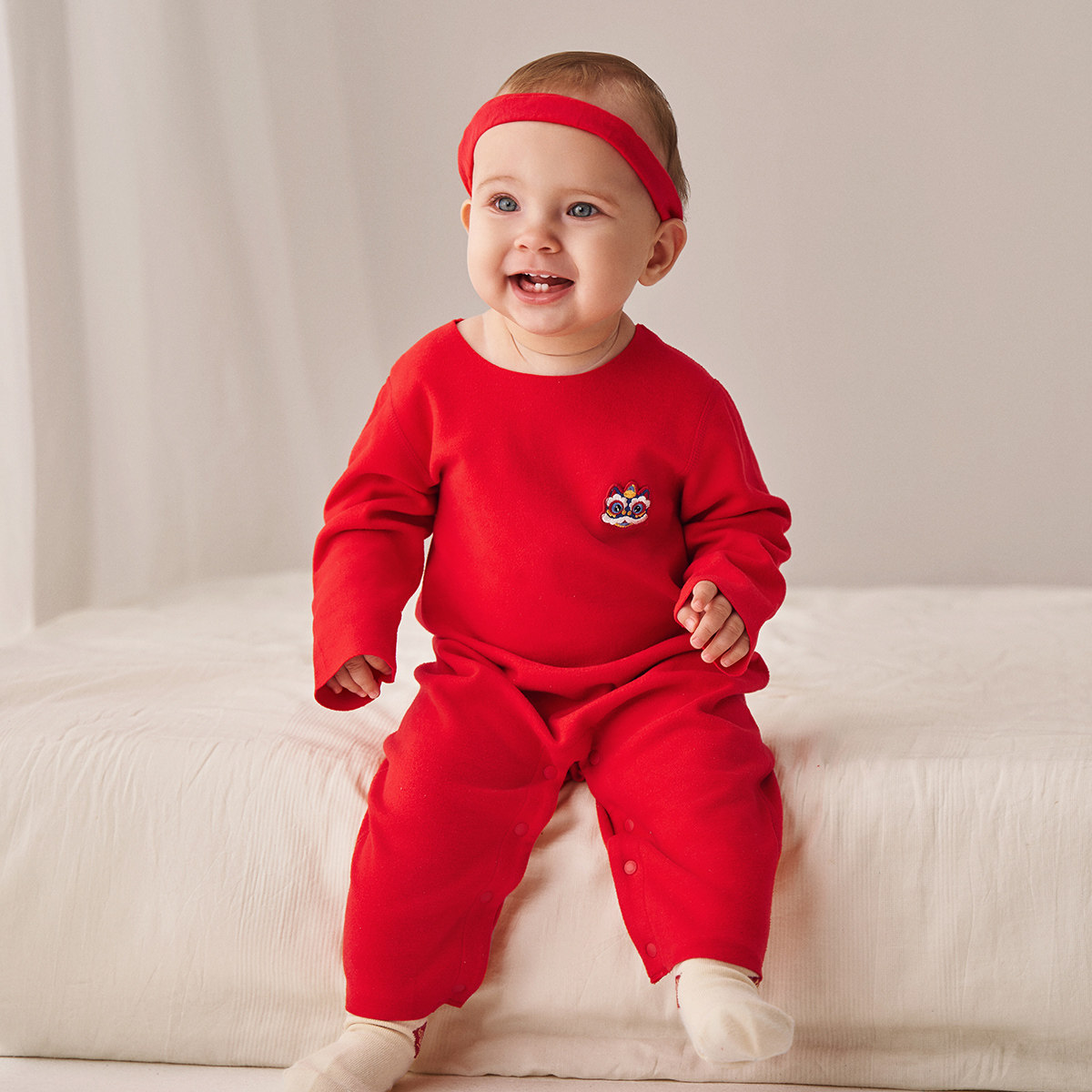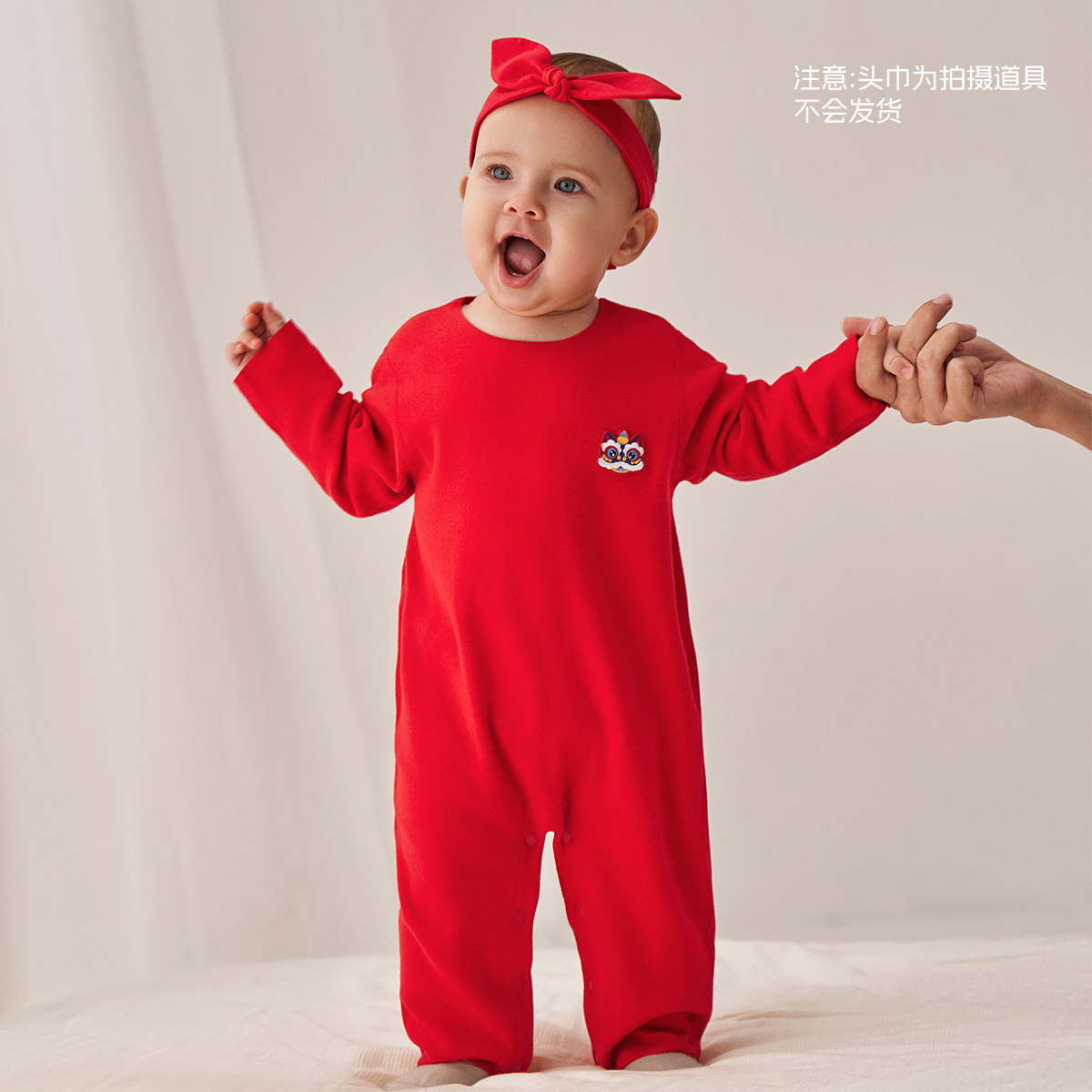 aqpa爱帕婴儿衣服德绒保暖秋冬宝宝长袖连体哈衣新年红满月周岁服