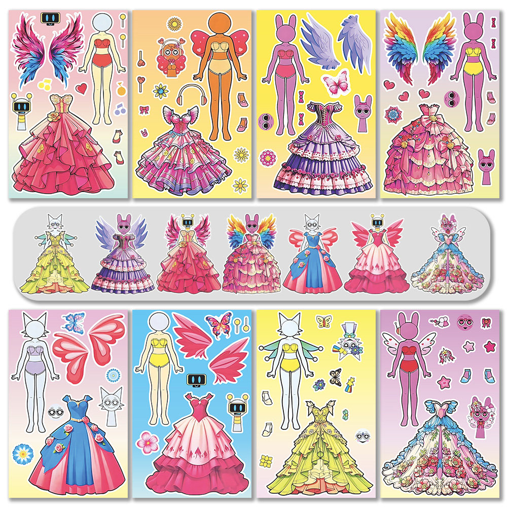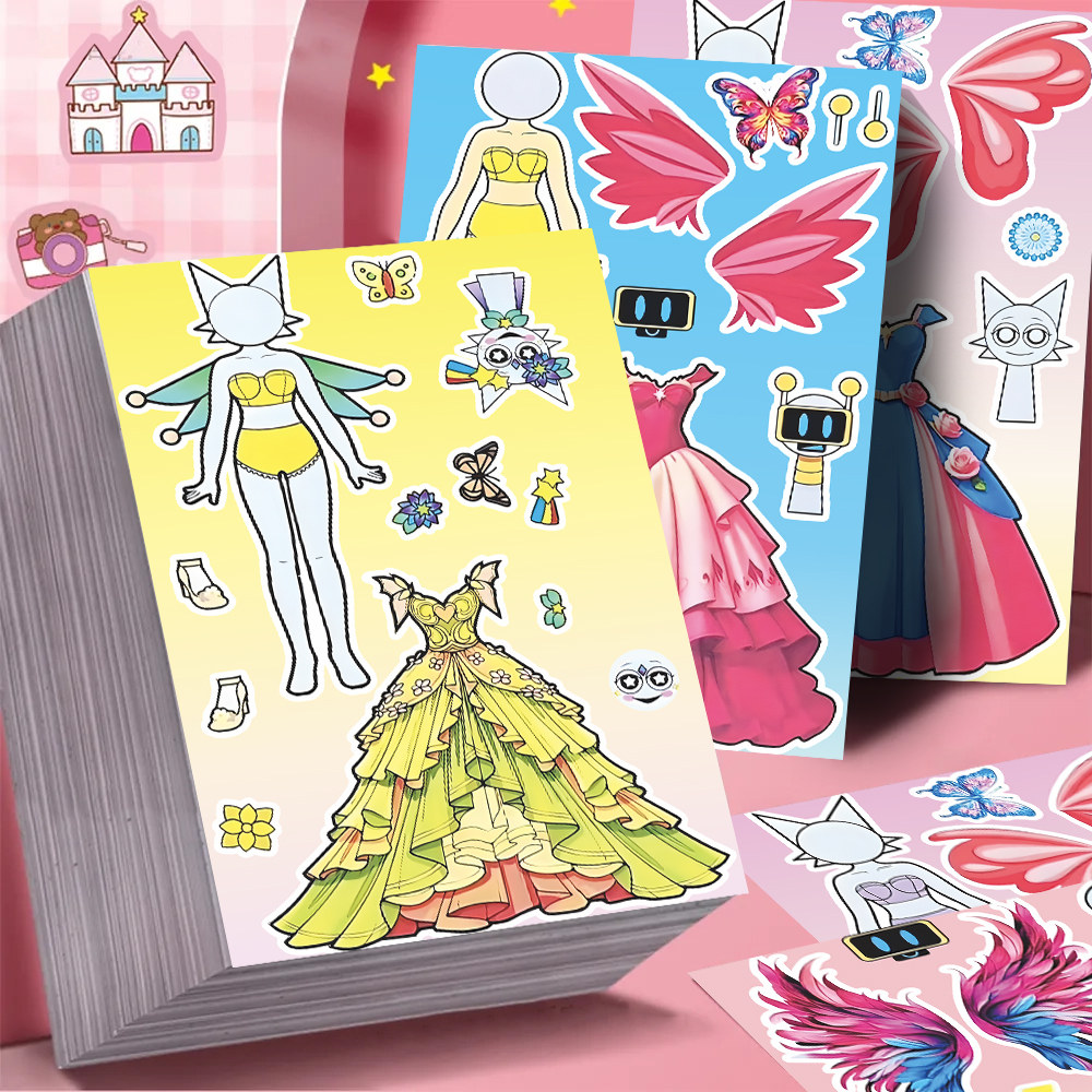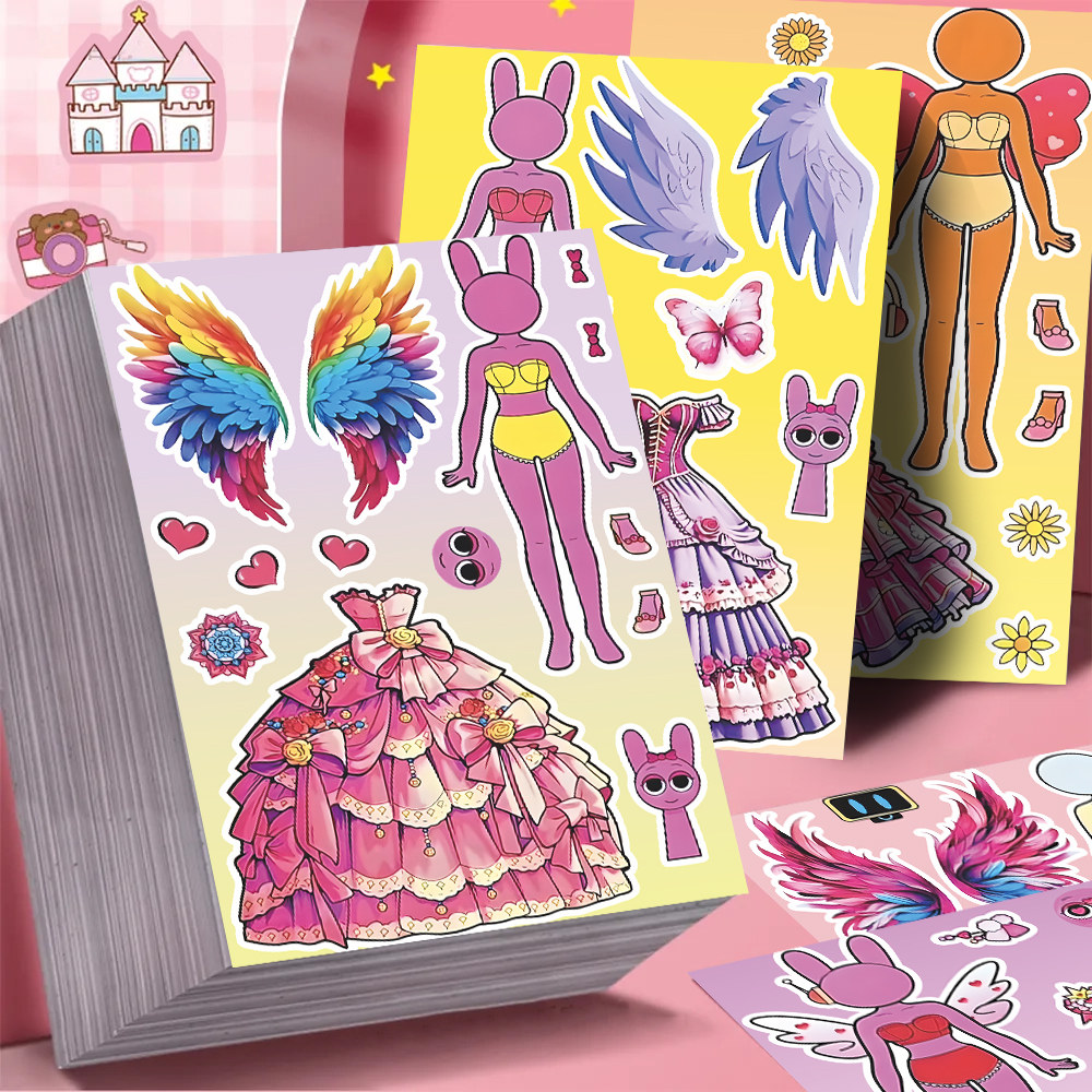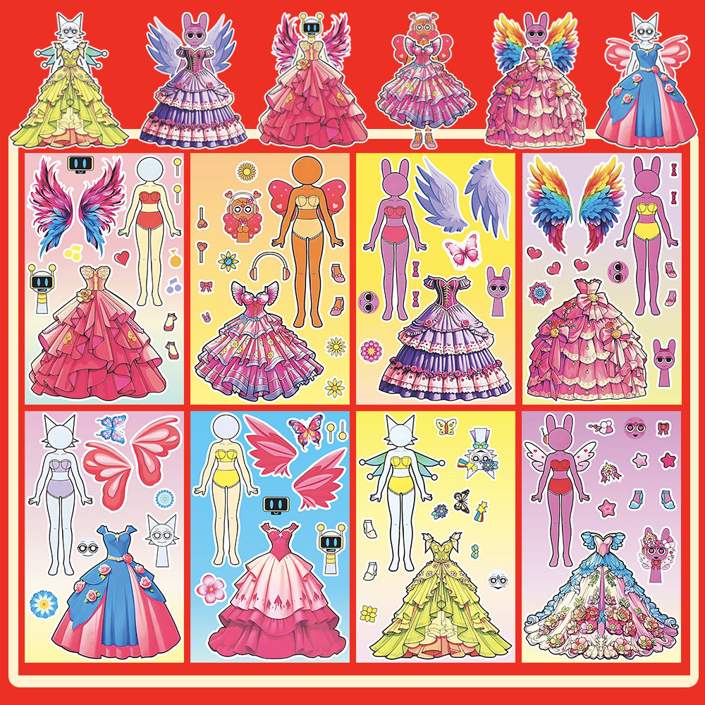 节奏盒子sprunki人物换装贴纸女孩公主裙穿搭少女心益智安静贴画