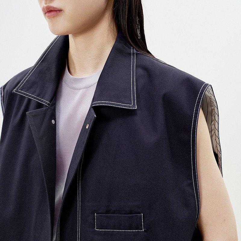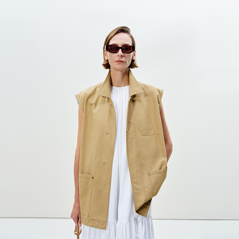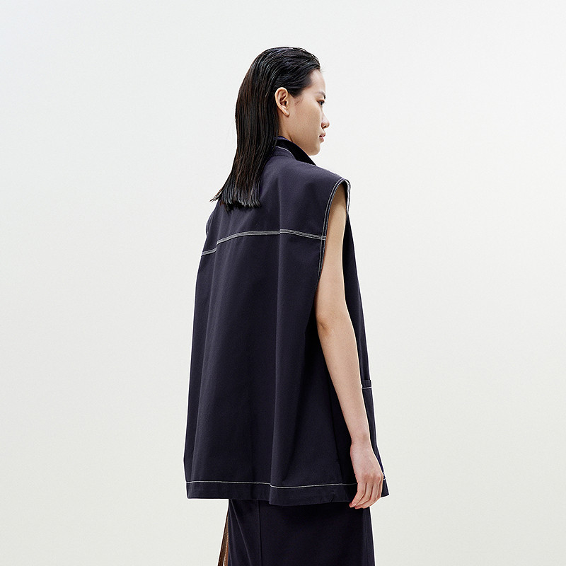 LESS夏季工装马甲女休闲宽松复古廓形中长款无袖外套女2P4511430
