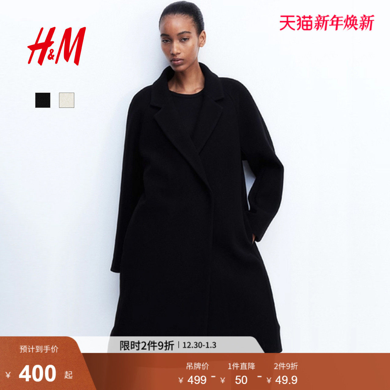 HM女装毛呢外套冬季时尚气质翻领舒适双排扣中长款大衣1159193