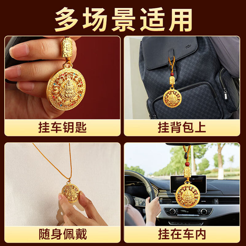 八宝罗盘钥匙扣黄财神吊坠编织绳仿金项链本命年挂件车钥匙金属