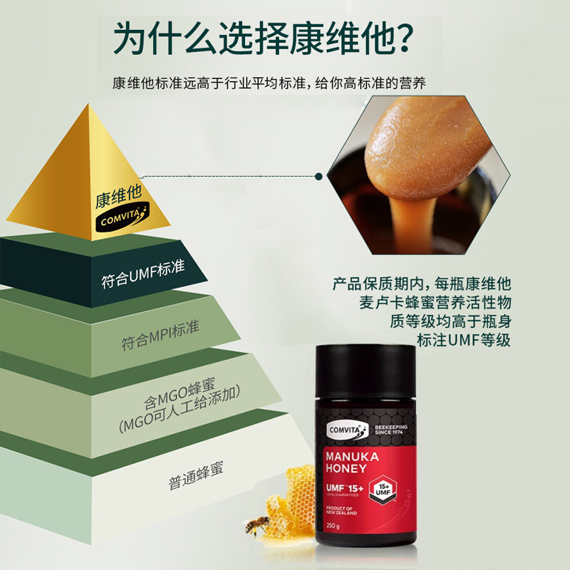 【自营】康维他UMF15+麦卢卡蜂蜜250g新西兰进口蜜蜂本土高阶蜜
