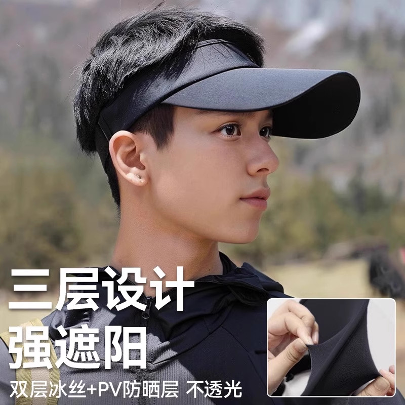 防晒帽男士夏季鸭舌遮阳帽大帽檐太阳帽户外运动钓鱼空顶帽子跑步