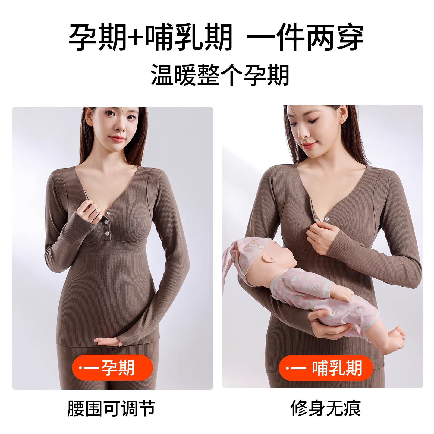 婧麒孕妇秋衣秋裤套装带胸垫哺乳抗菌保暖内衣秋冬大码产妇月子服