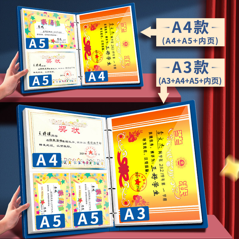 奖状收集册2025新款大号a3收纳袋可挂墙展示男孩女孩证书展示框a4儿童神器收藏册相册放装作品的幼儿园小学生