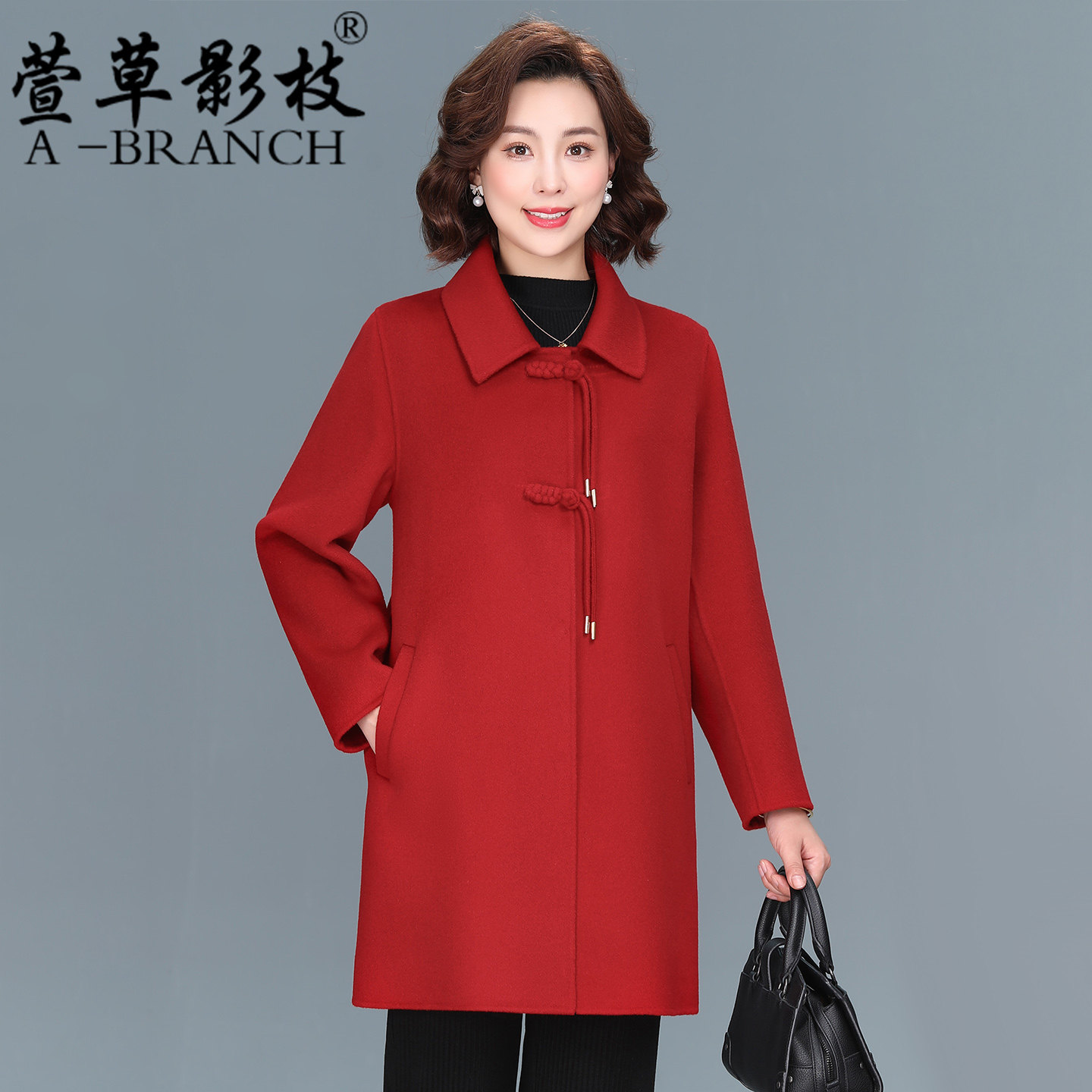 中老年女装新中式国风双面绒羊毛大衣2025时尚妈妈秋冬季毛呢外套