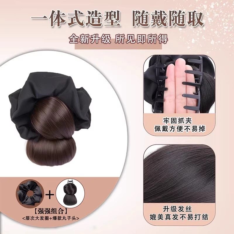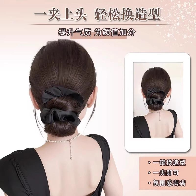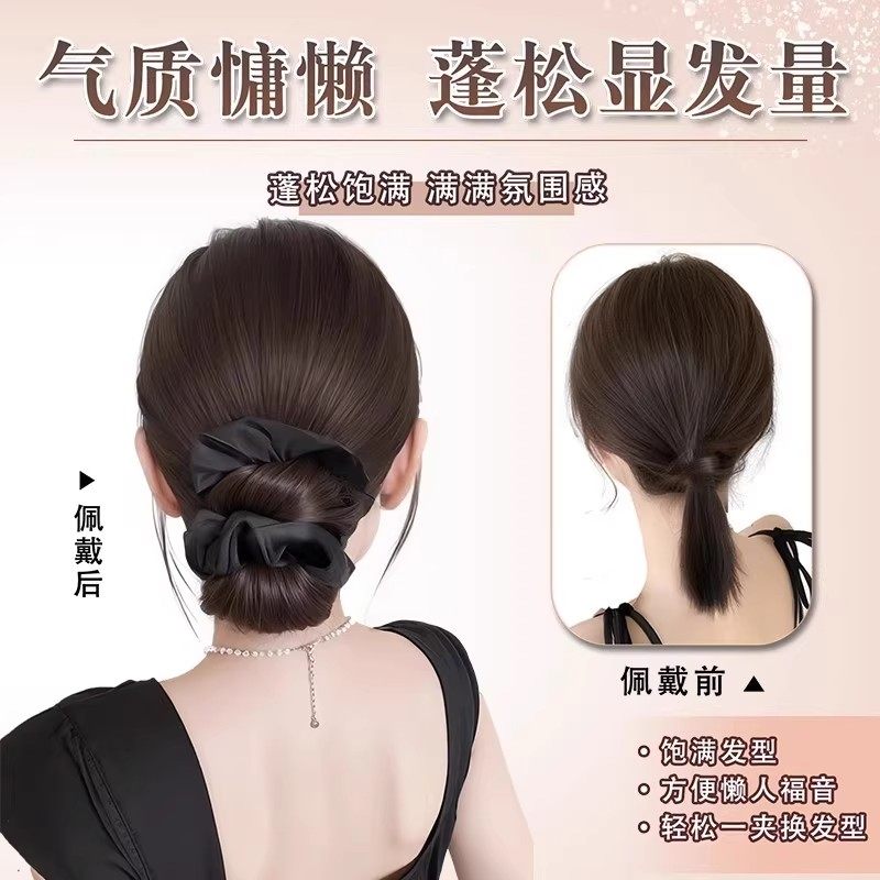 低扎丸子头假发抓夹花苞头慵懒感假发圈法式盘发神器后脑勺假发包