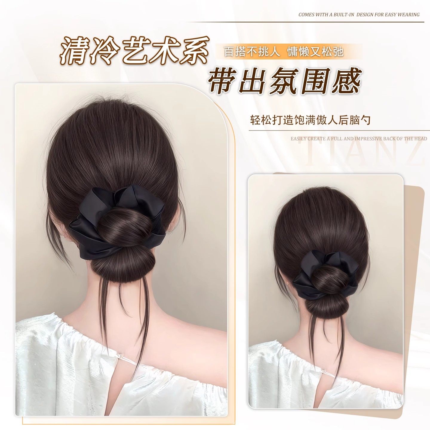 低扎丸子头假发鸡毛头抓夹盘发发包慵懒感造型头饰自然蓬松后脑勺