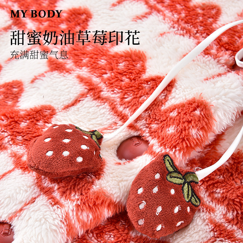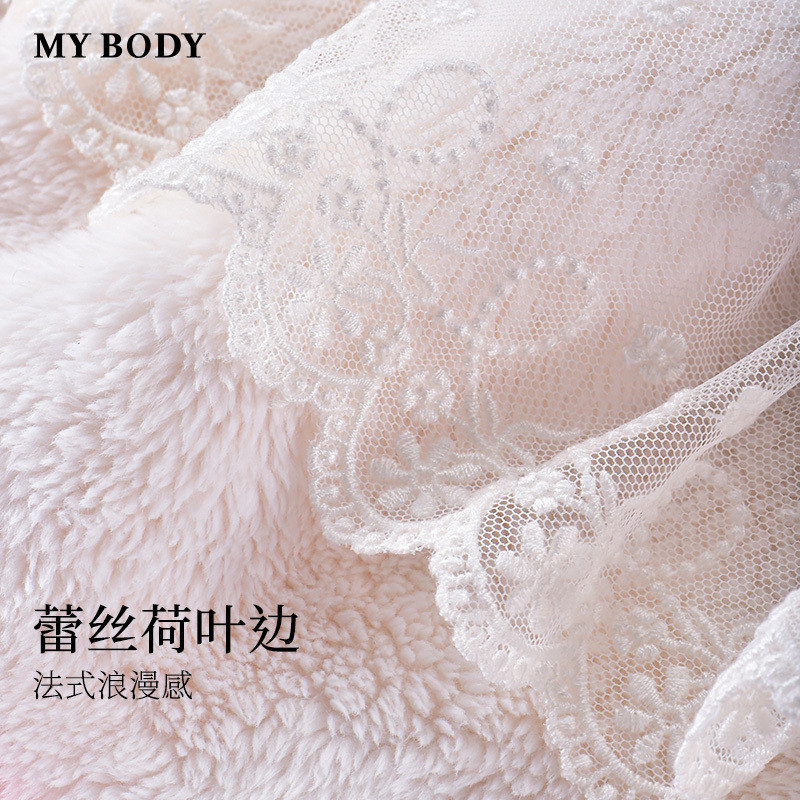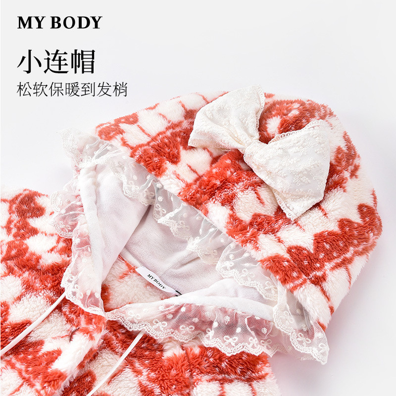 商场同款MYBODY冬季新款睡裙甜蜜草莓暖暖北极绒连帽可外穿家居服