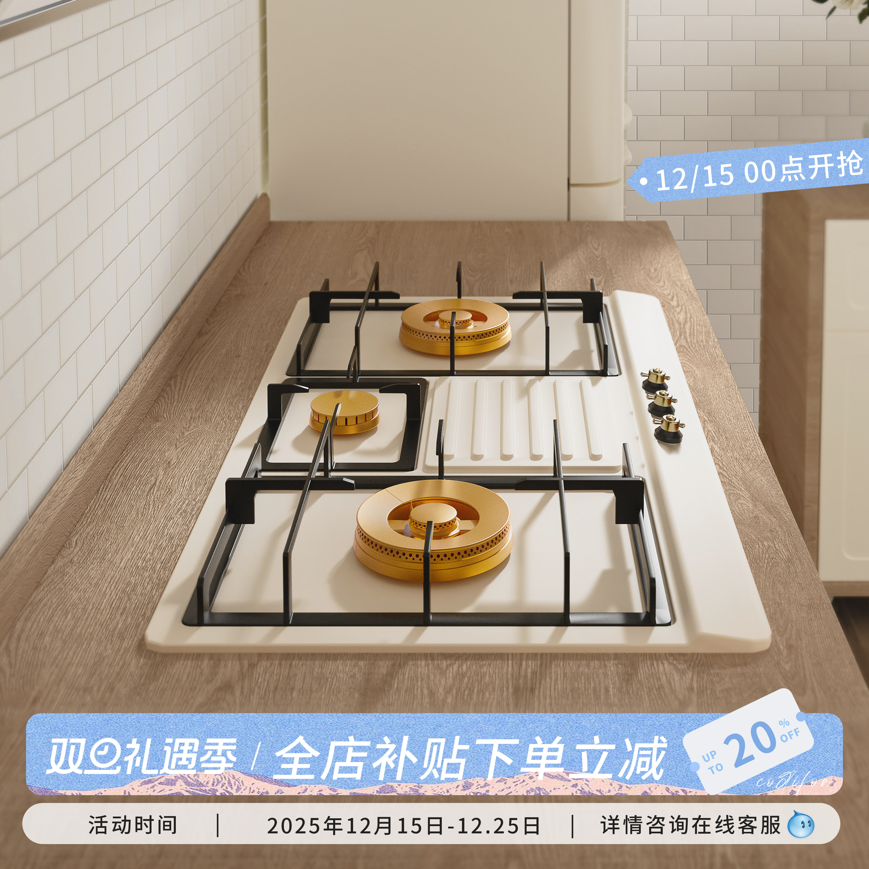 三眼燃气灶复古煤气灶家用嵌入式奶油白天然气不锈钢多眼猛火灶具