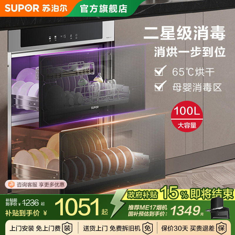 苏泊尔消毒柜508家用嵌入式餐具碗筷高温烘干机厨房消毒碗柜
