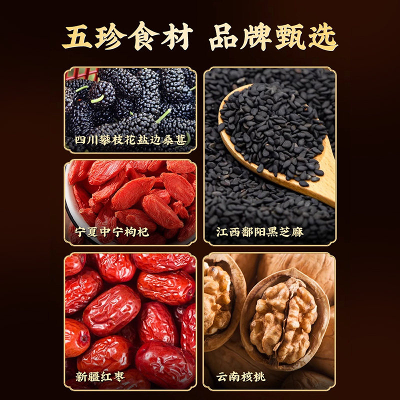 五珍黑芝麻丸球核桃仁桑葚软糕小吃孕妇休闲零食正品官方旗舰店