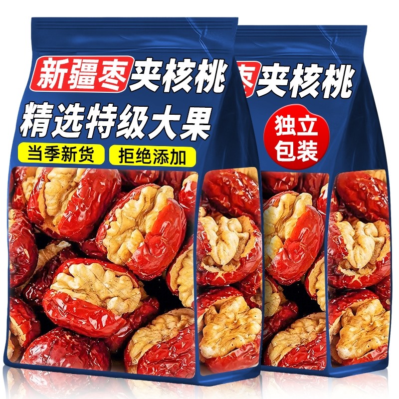红枣夹核桃仁500g袋装大红枣夹心核桃独立包装零食大枣香酥原味