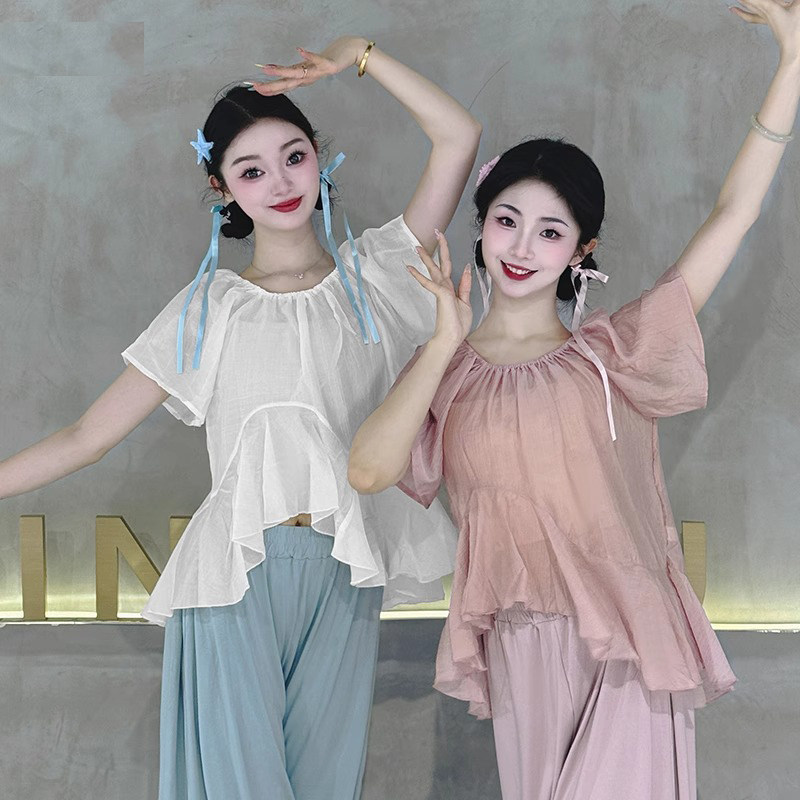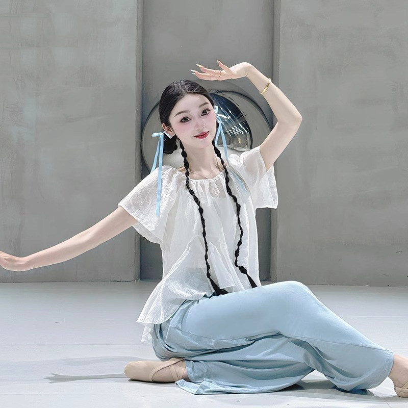 舞蹈上衣女款新款现代舞中国舞服装日常可穿夏天古典舞练功服白色