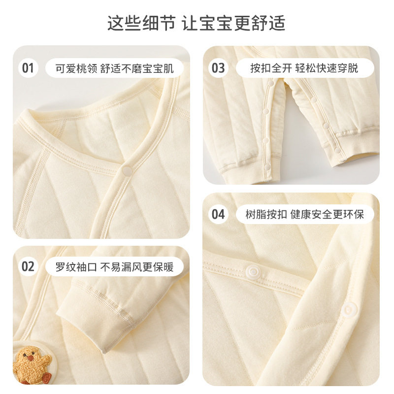 新生婴幼儿衣服秋冬季纯棉初生宝宝保暖连体衣夹棉小月龄和尚服