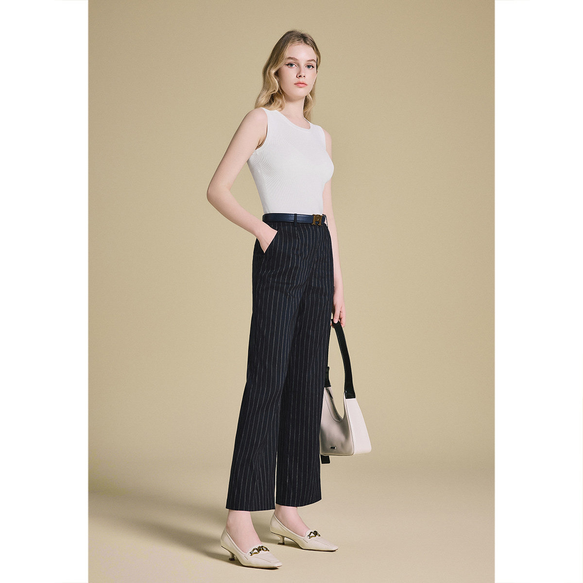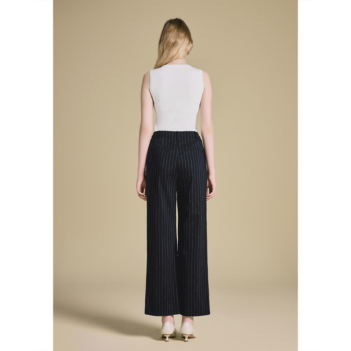 PSALTER诗篇休闲高智感通勤风亚麻细条纹休闲长裤女2025夏款