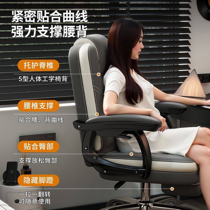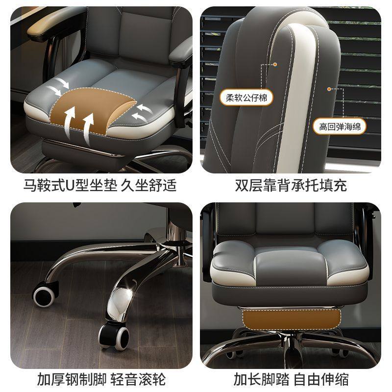 电脑椅家用办公椅舒适久坐可躺办公室靠背椅皮质座椅书桌椅子升降