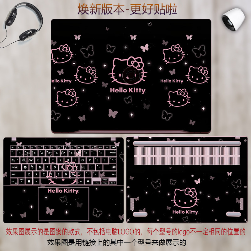 卡通贴纸kitty适用华硕a豆联想华为红米华硕戴尔机械革命荣耀笔宏碁ROG惠普Thinkpad电脑贴纸保护膜来图定制