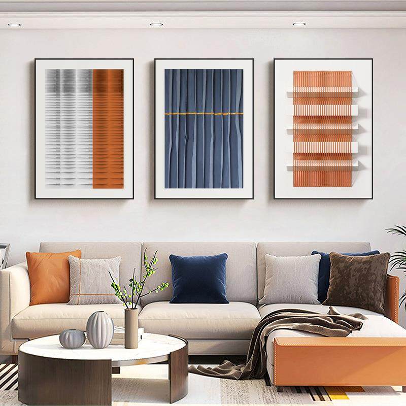 旋律现代简约橙色客厅装饰画抽象线条沙发背景挂画极简艺术壁画