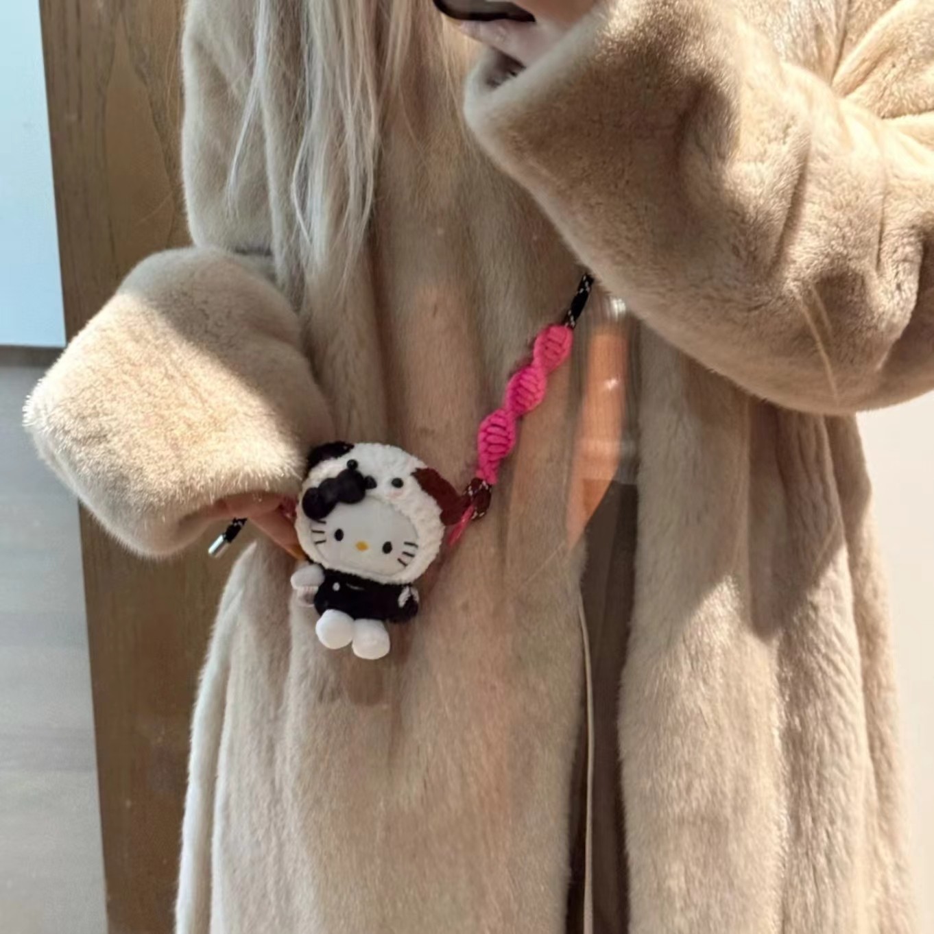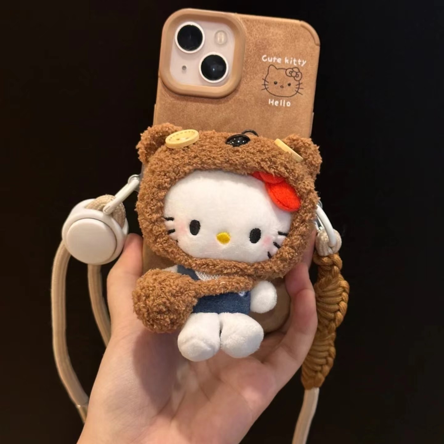 卡通通用手机背夹背带公仔毛绒斜挎绳可爱可调节挂绳玩偶包包挂