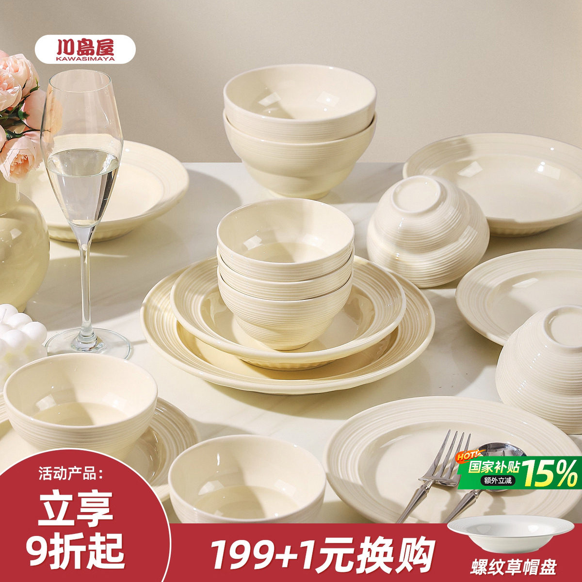 川岛屋奶油风餐具碗碟套装家用2025新款碗盘碗筷乔迁之喜新居礼物