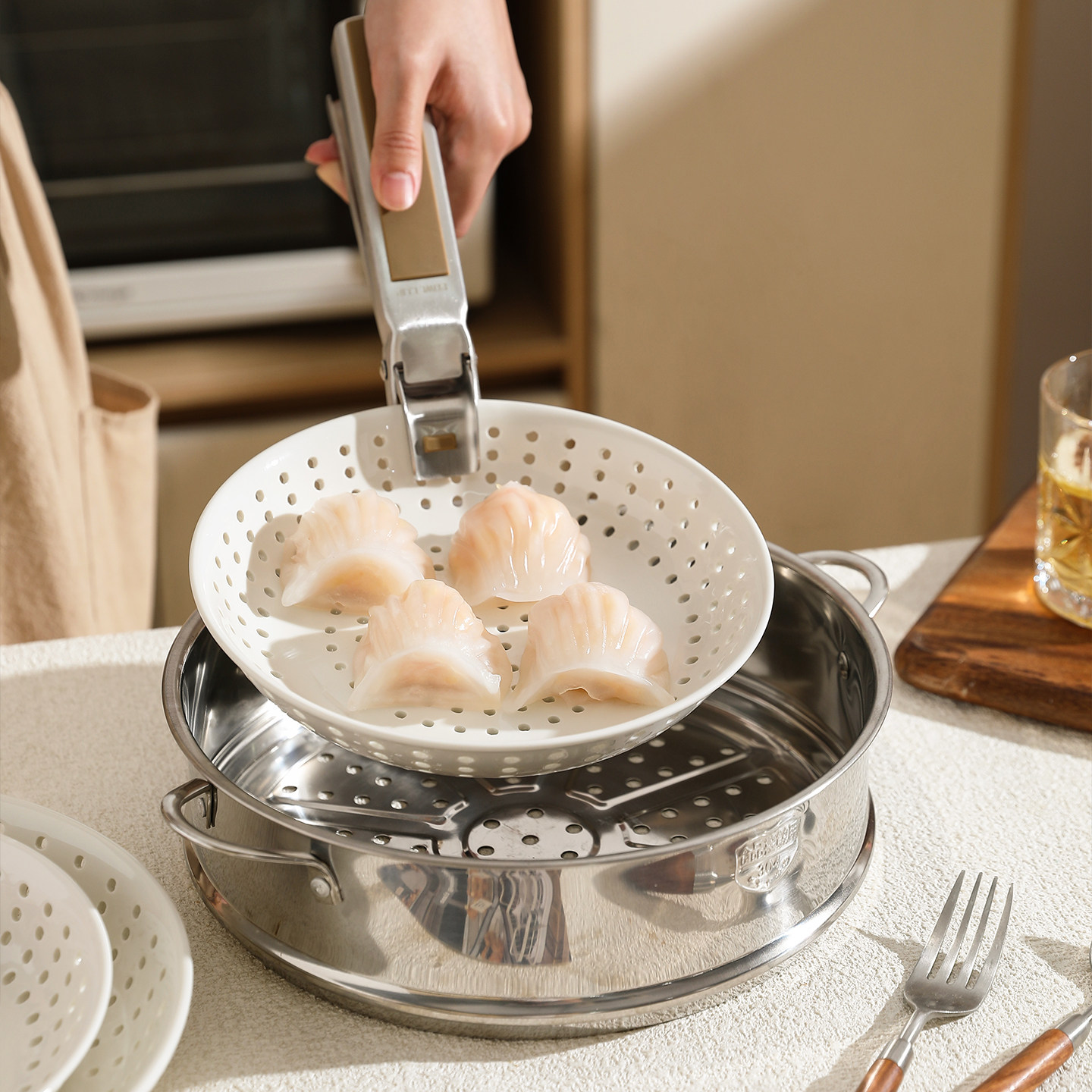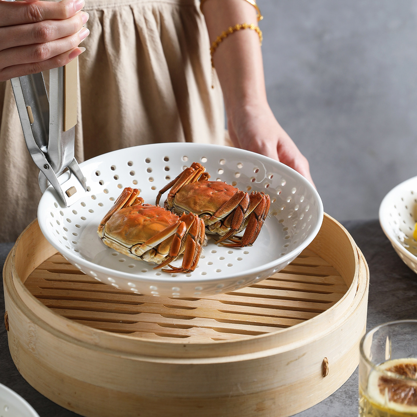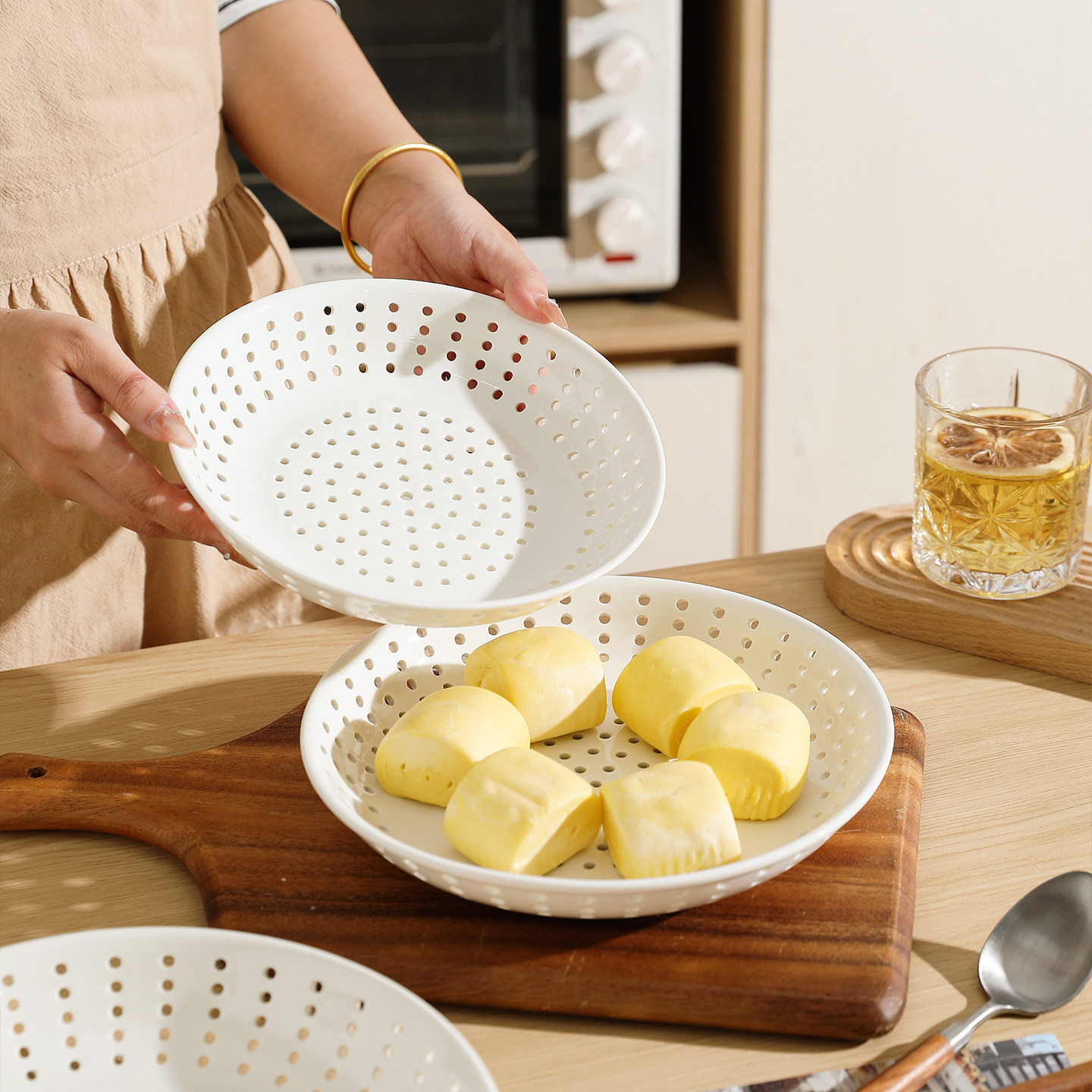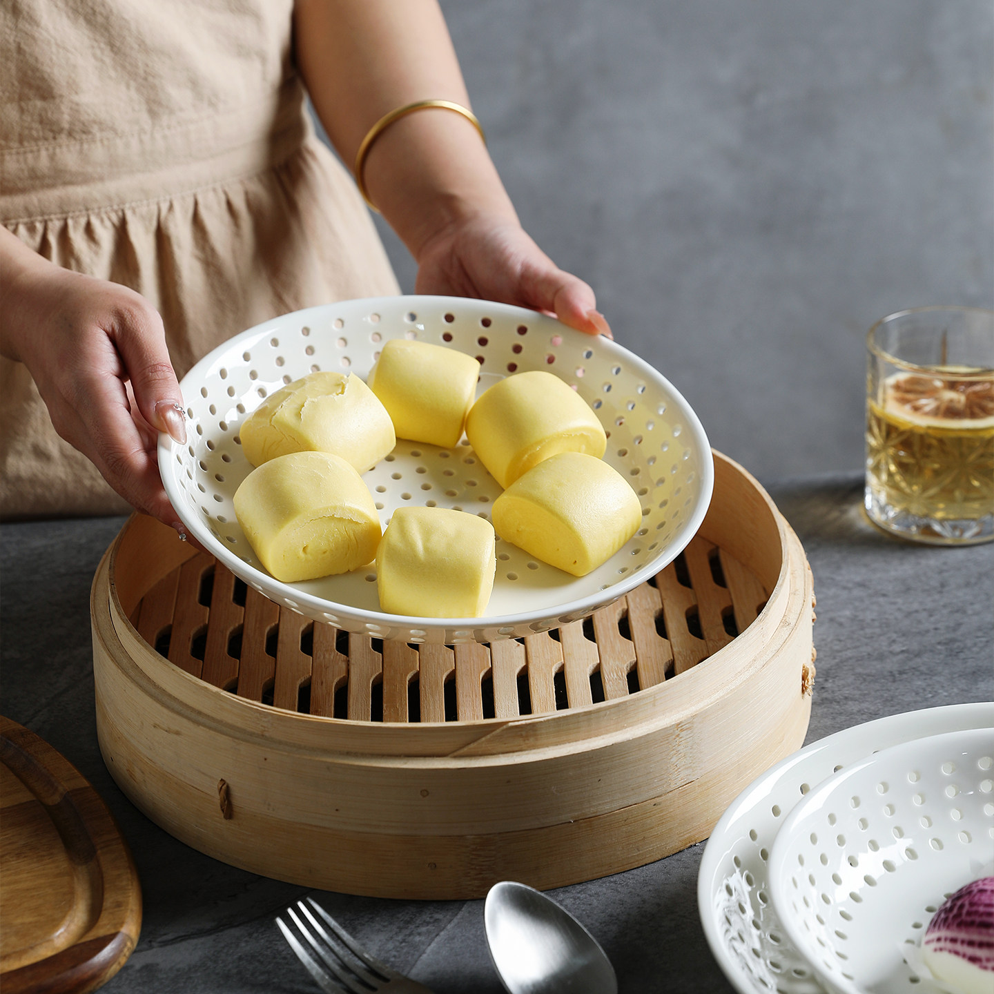 舍里陶瓷多孔蒸盘创意商用蒸饺子盘蒸海鲜圆形蒸碟蒸包子沥水盘子
