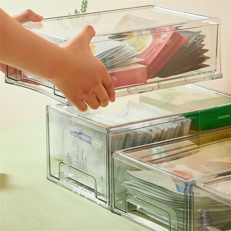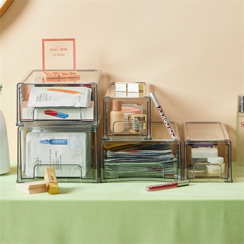 洋洋鱼透明抽屉式收纳盒多功能桌面储物盒面膜文具零食整理盒化妆