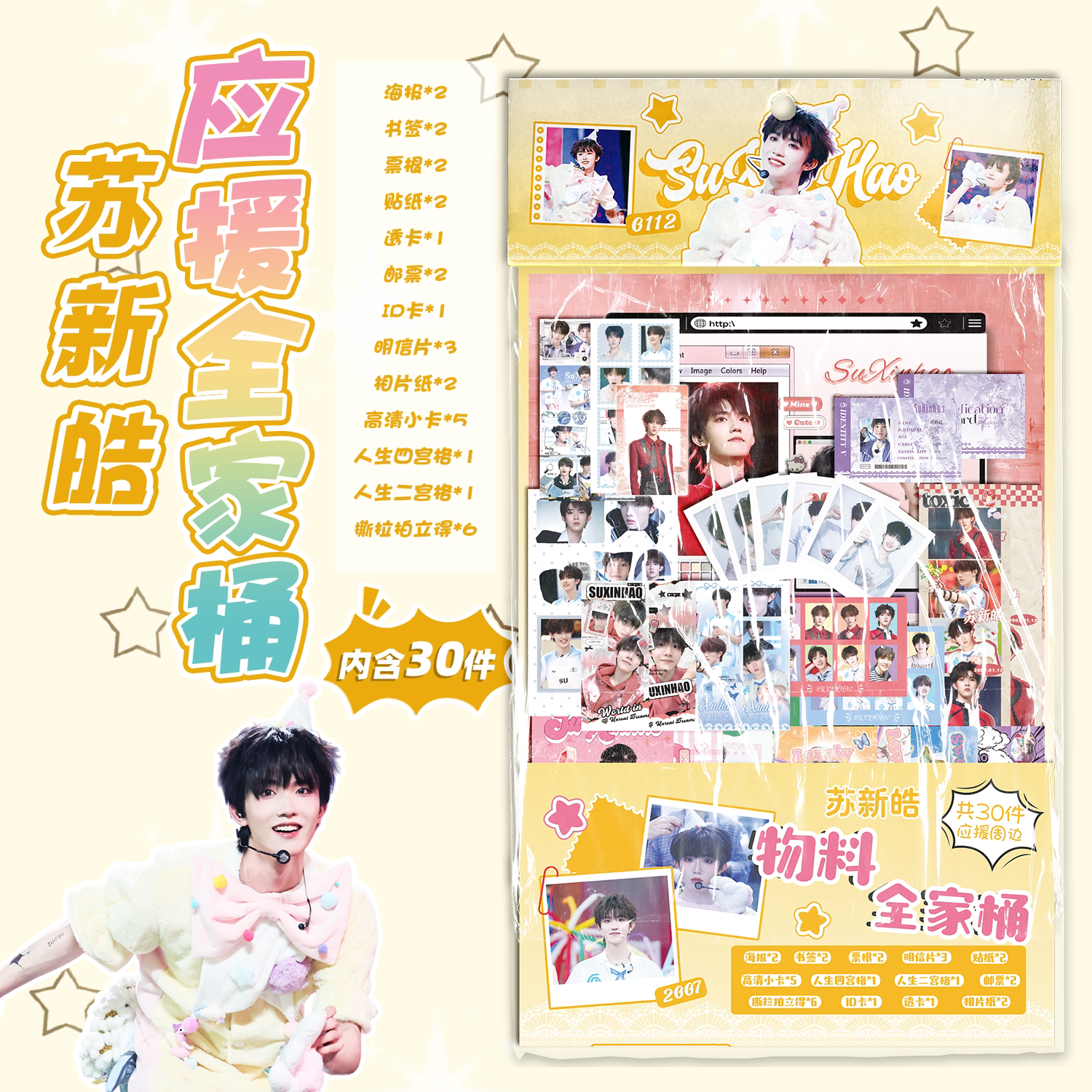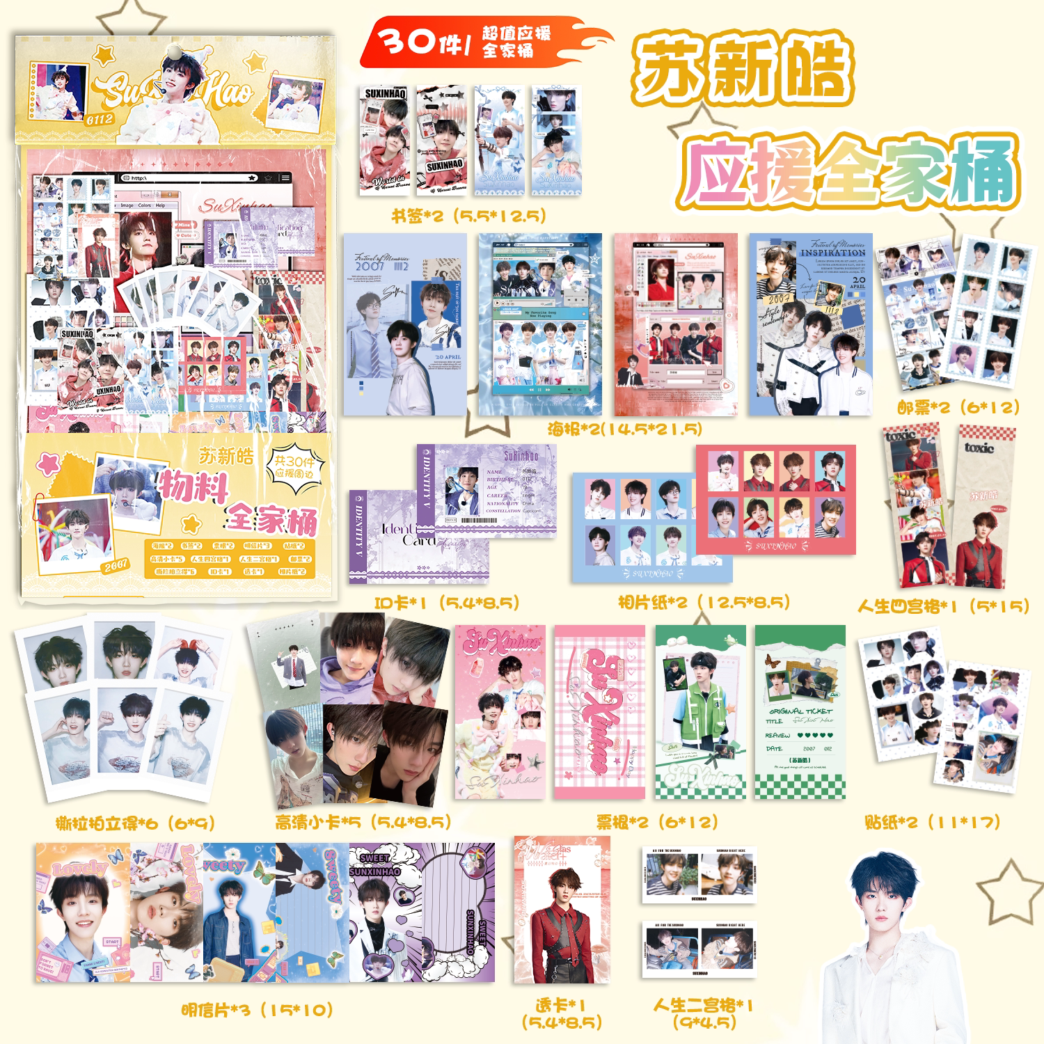 苏新皓应援物料全家桶明星周边书签镭射小卡透卡明信片30件大礼包