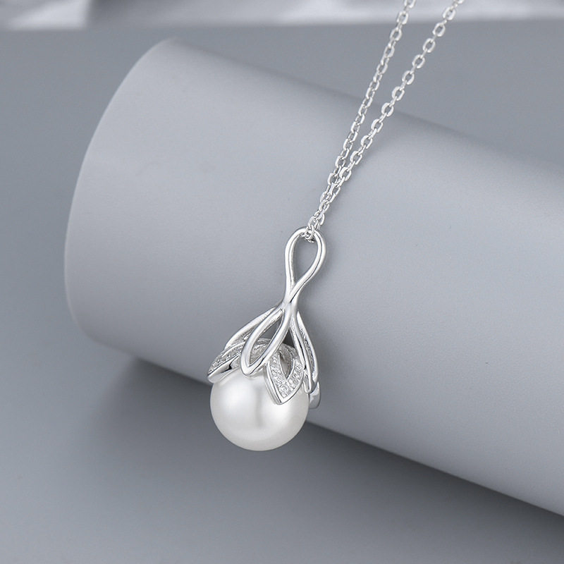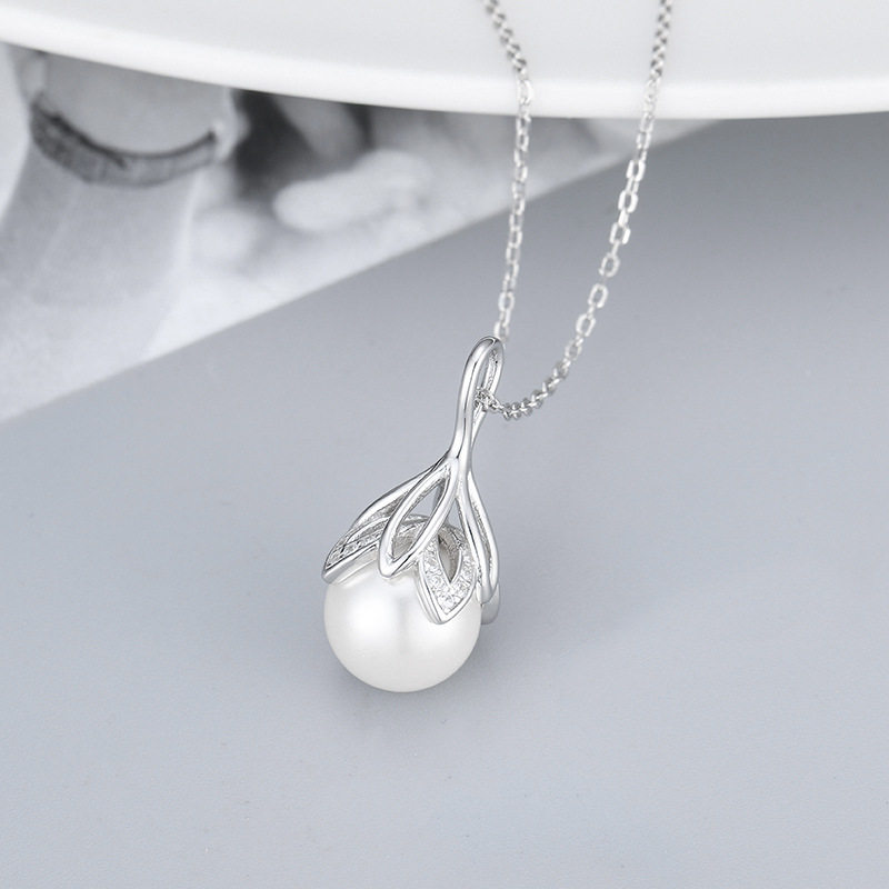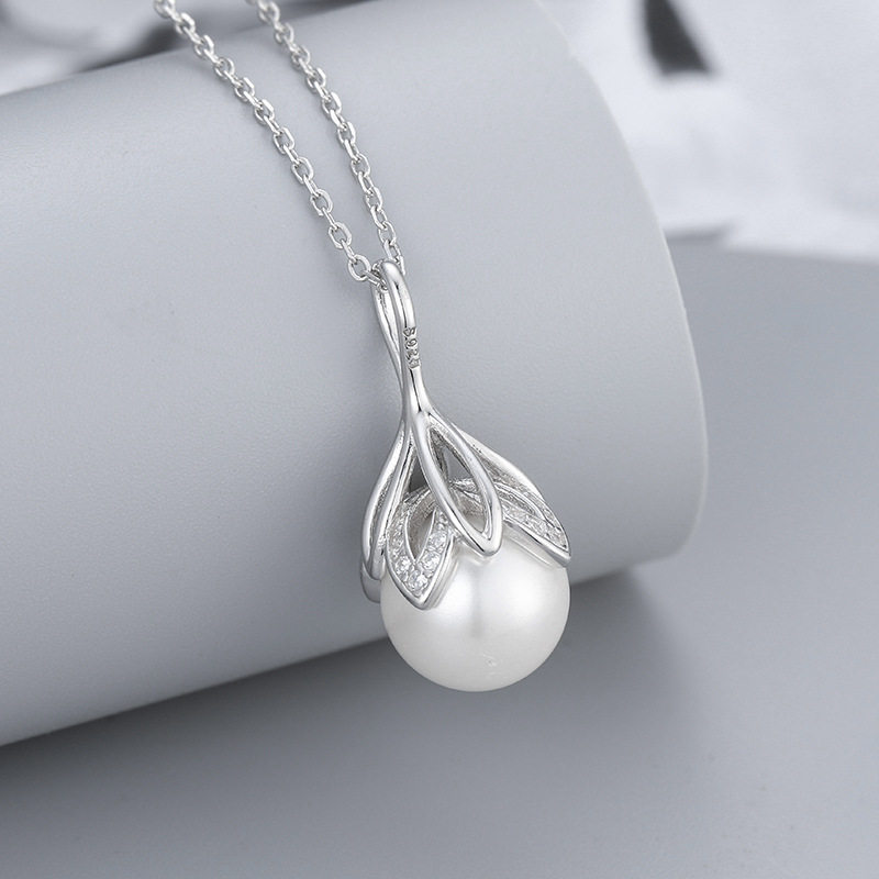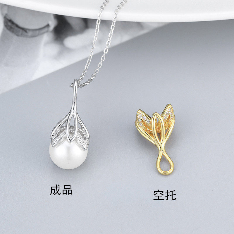跨境货源S925银韩版花朵珍珠项链女时尚项坠锁骨链DIY空托配饰