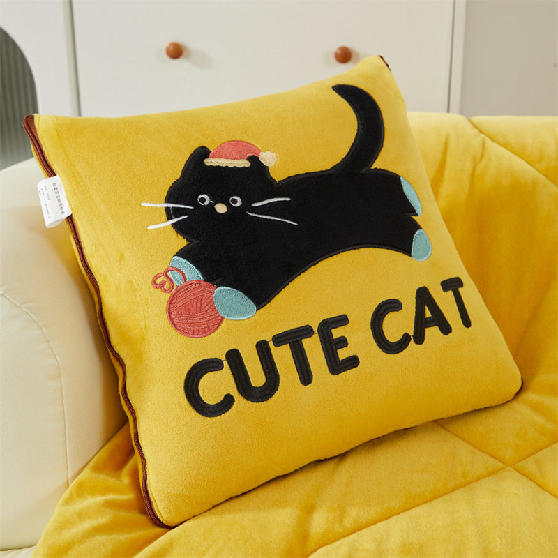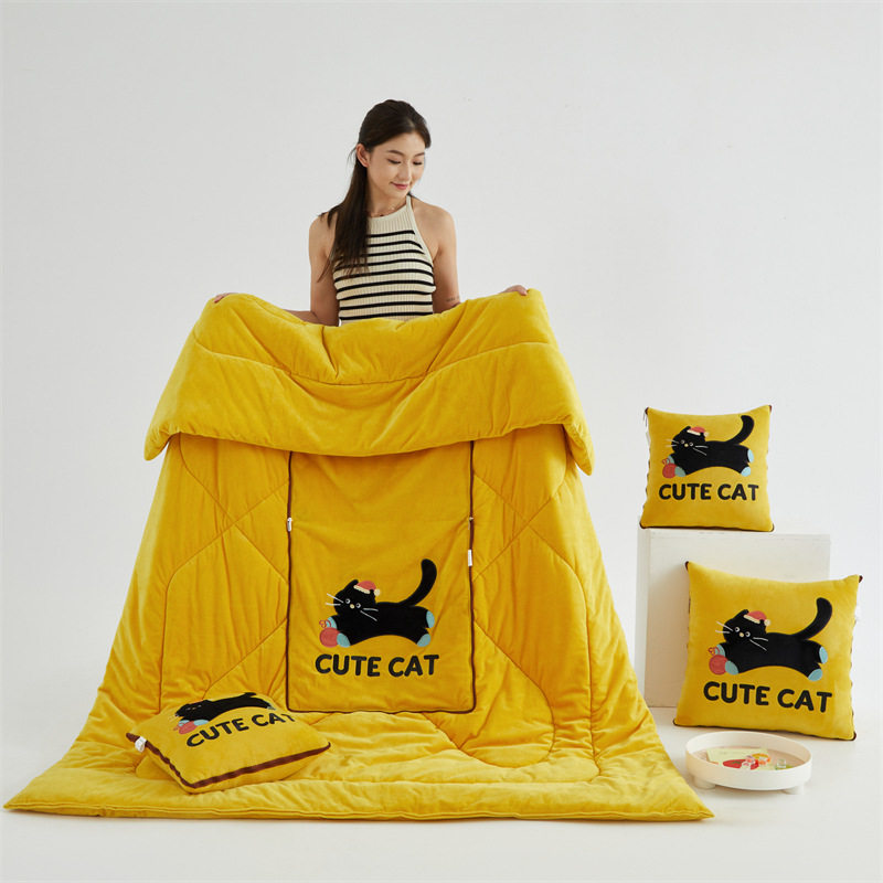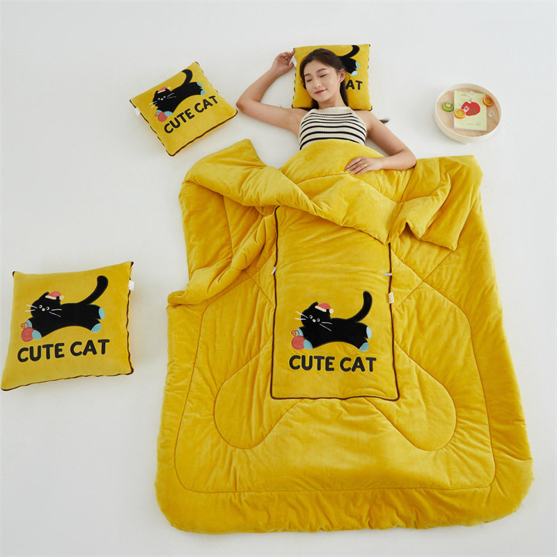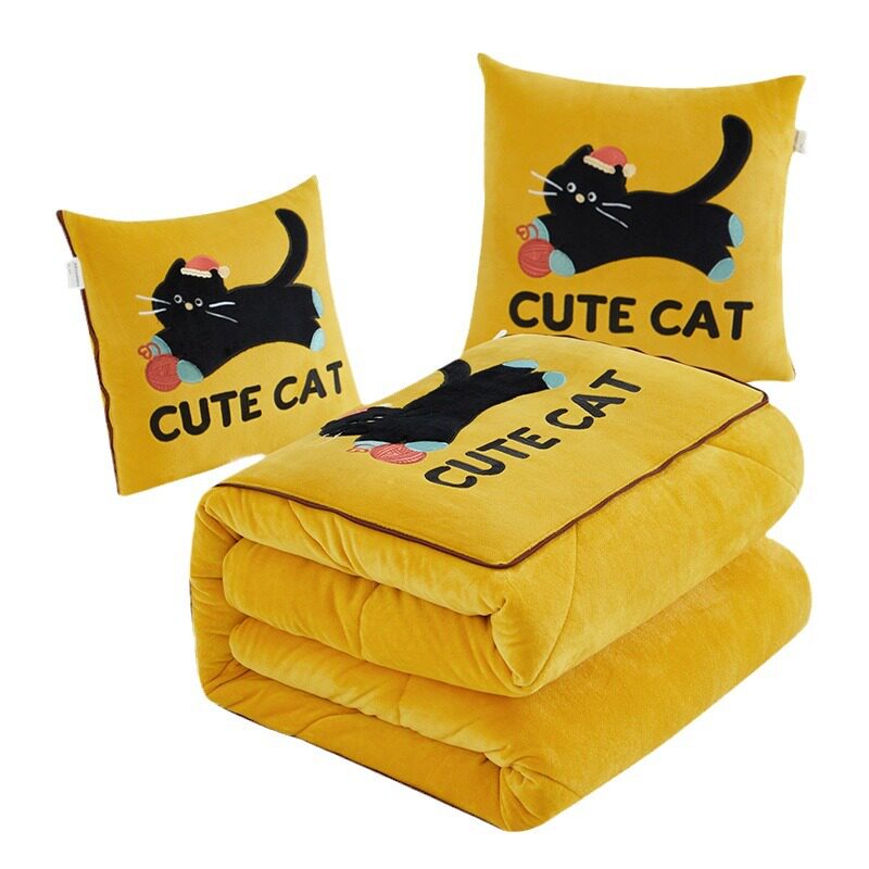 加厚加绒图拉拉抱枕被子两用汽车载午休盖被办公室宿舍冬季折叠毯