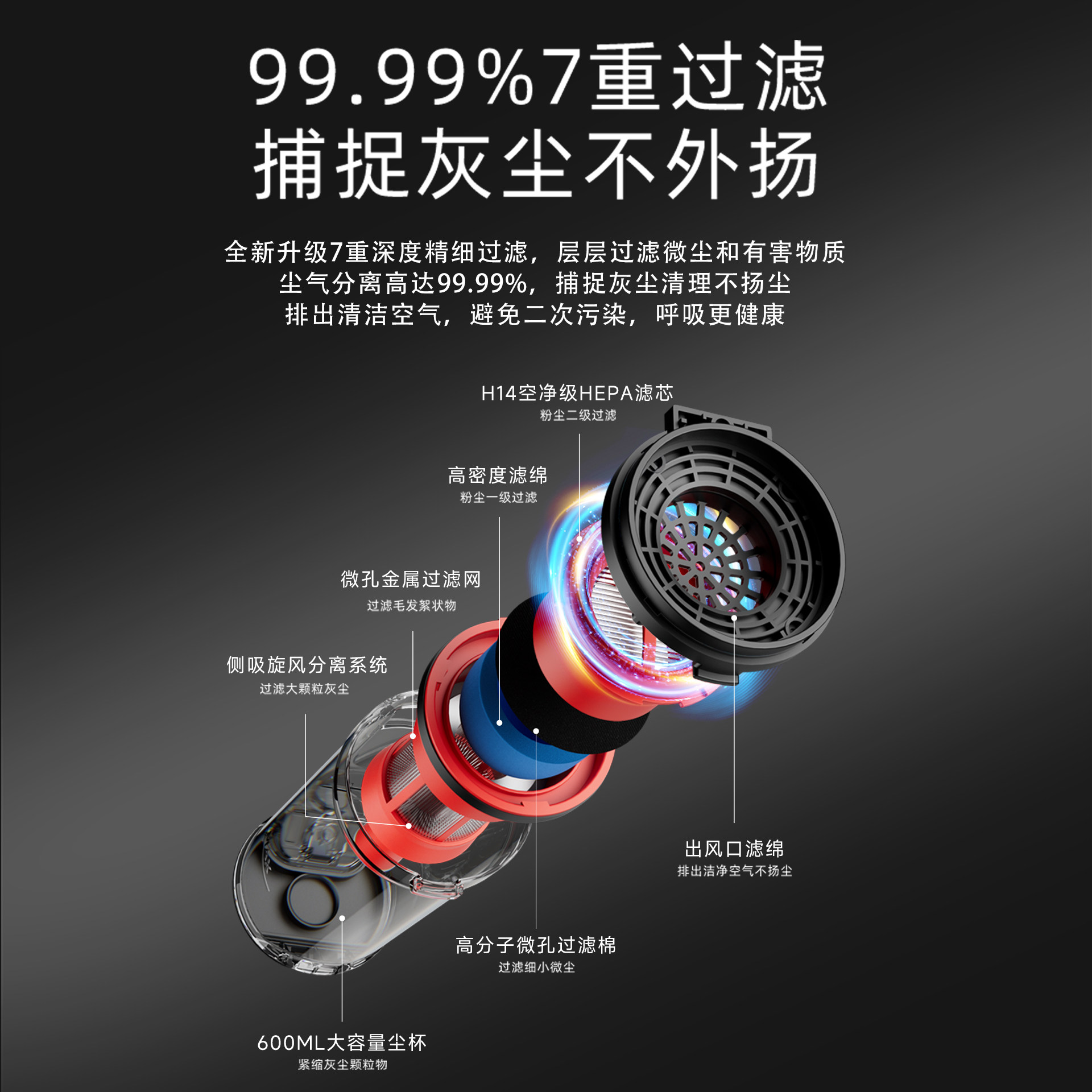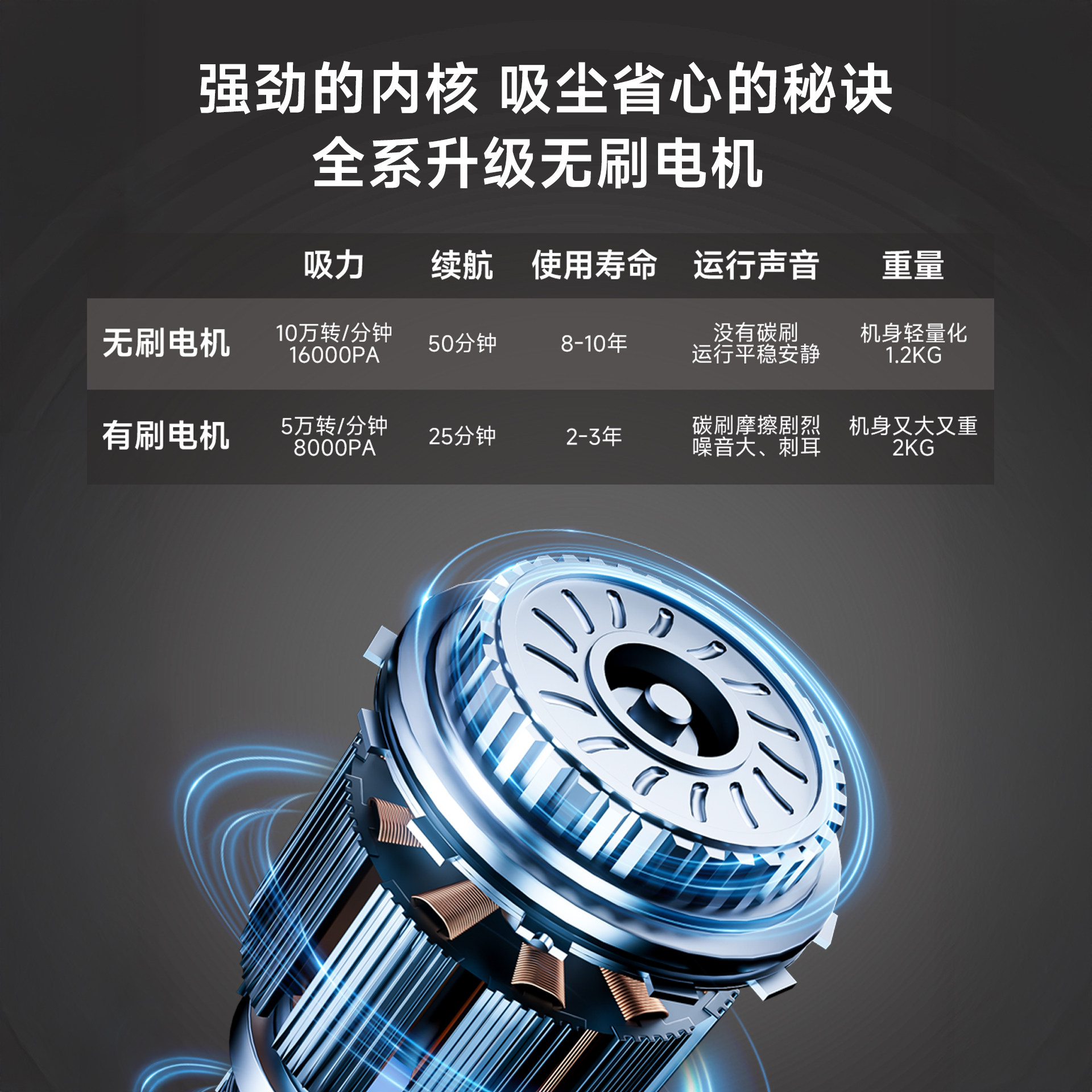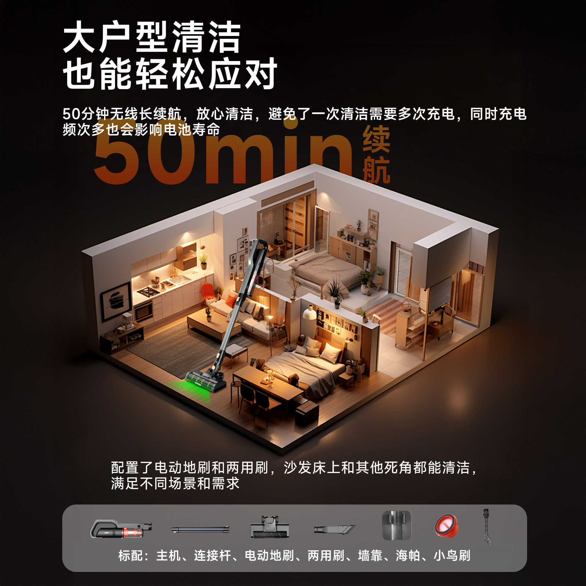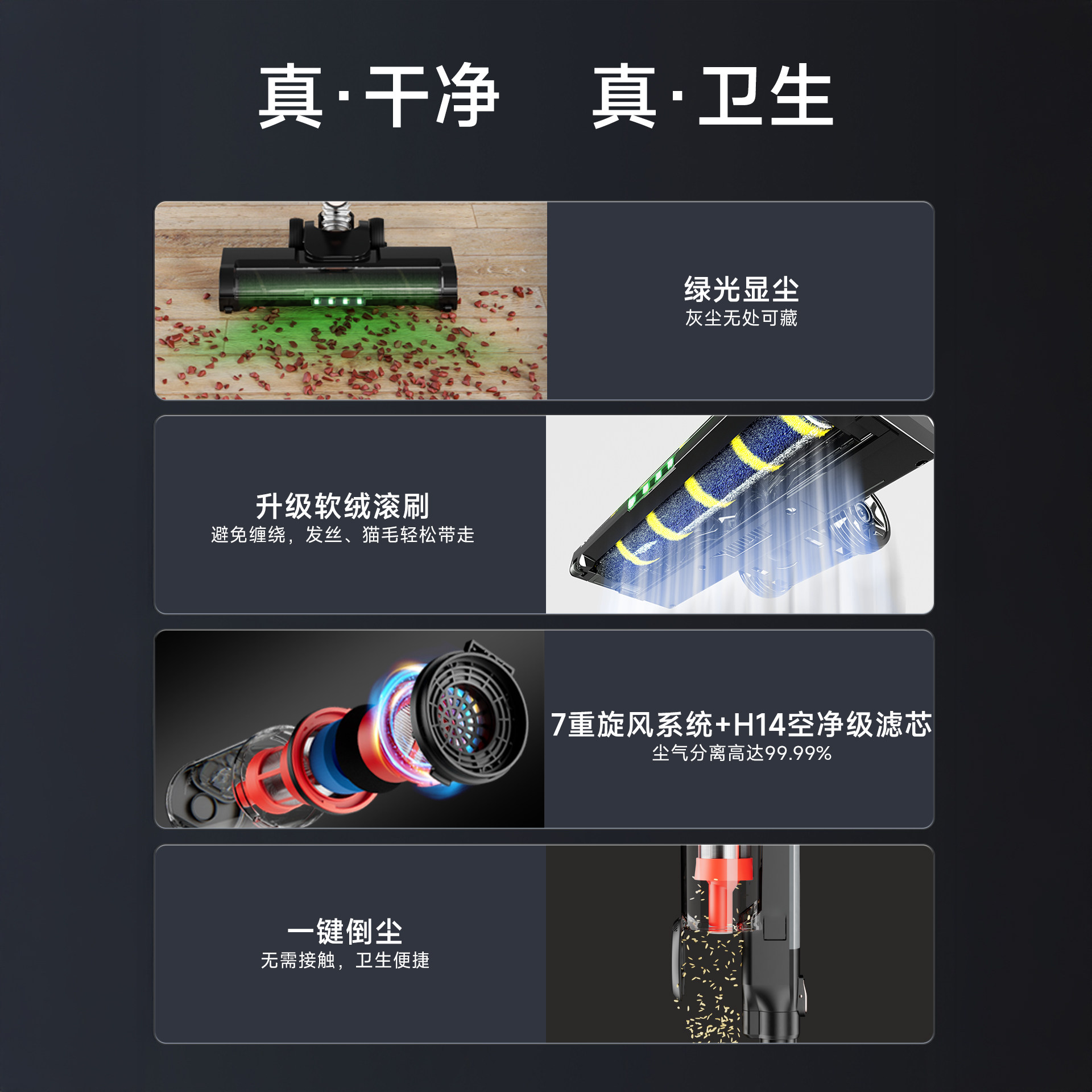 990g轻量化机身 / 防缠绕软绒电动地刷