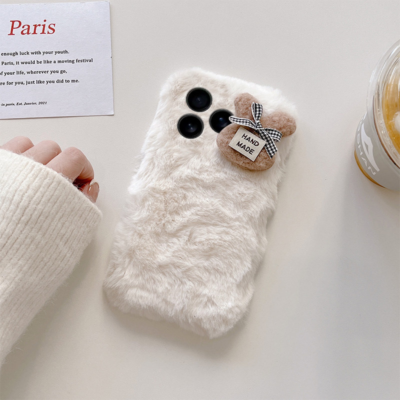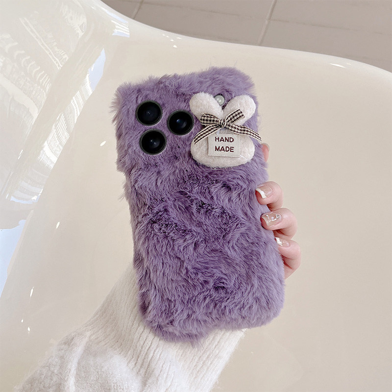 手机壳秋冬毛绒可爱卡通蝴蝶结兔子