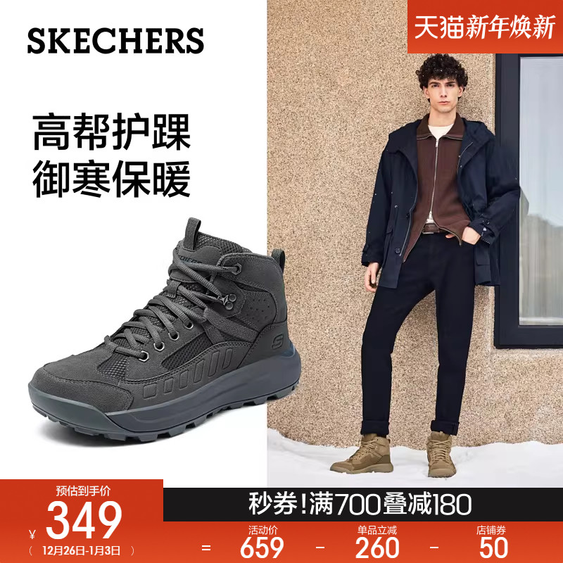 斯凯奇冬季男子复古高帮雪地靴厚底舒适百搭休闲运动户外鞋大黄靴