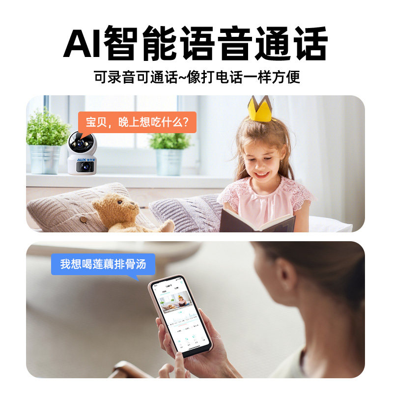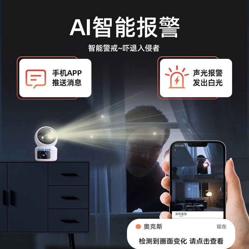 奥克斯无线摄像头监控家用手机远程4G无需网络360度无死角免插电