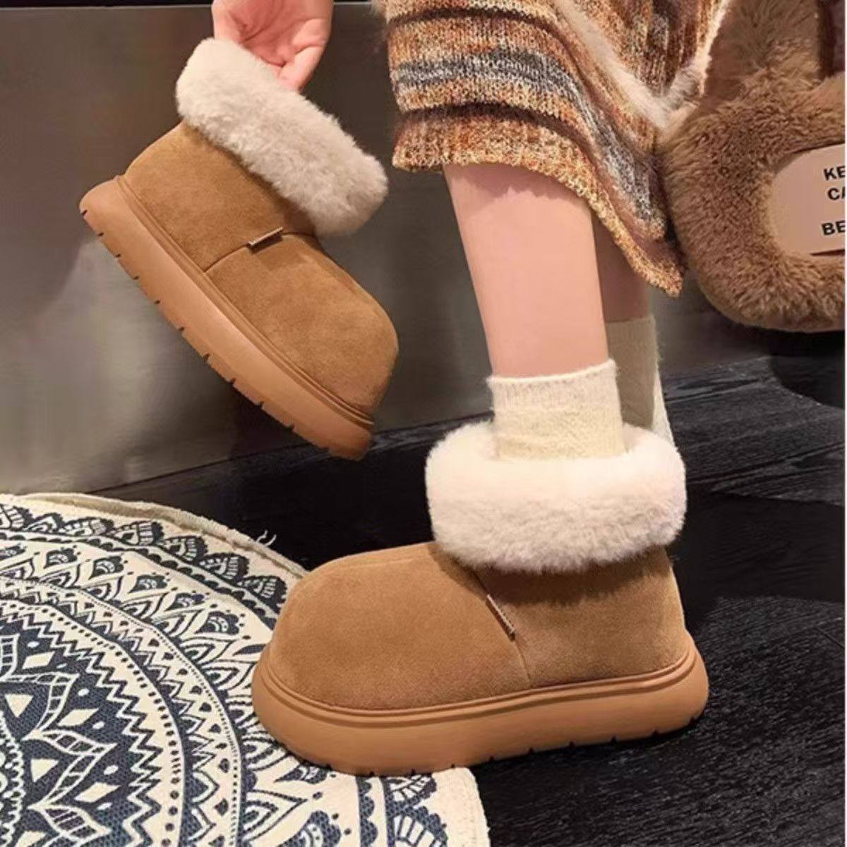低帮厚底雪地靴女2025新款冬季懒人一脚蹬毛毛棉鞋加绒加厚女鞋子
