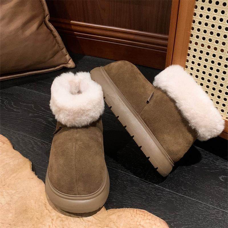油叽叽~真皮羊毛雪地靴女冬季加绒加厚保暖棉靴厚底增高短筒靴子
