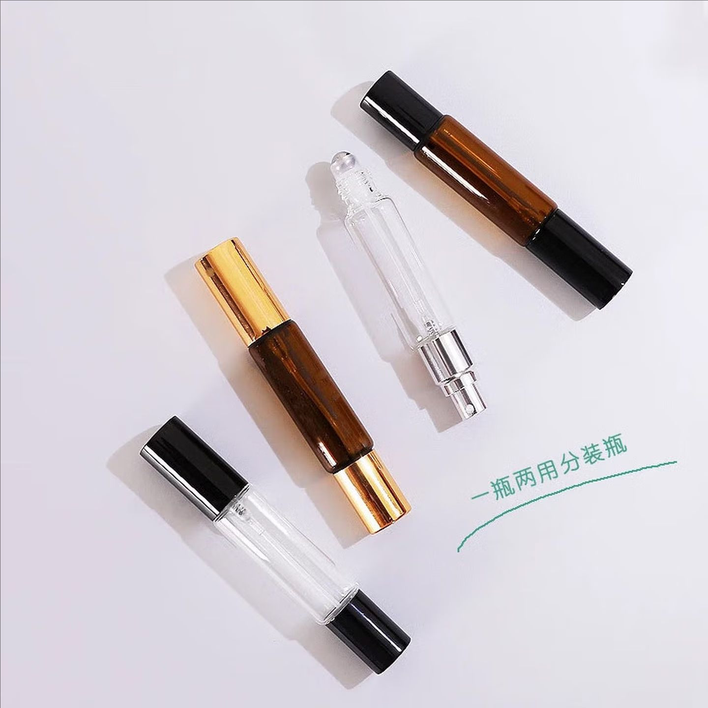 双头两用分装瓶旅行方便携带圆柱香水化妆品透明玻璃瓶滚珠喷雾瓶