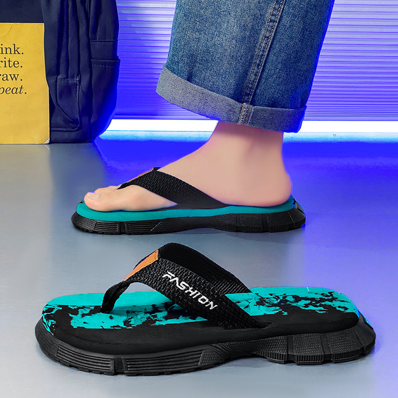 夏季男士拖鞋青春潮流厚底外穿凉拖大码防滑耐磨沙滩夹脚人字拖男