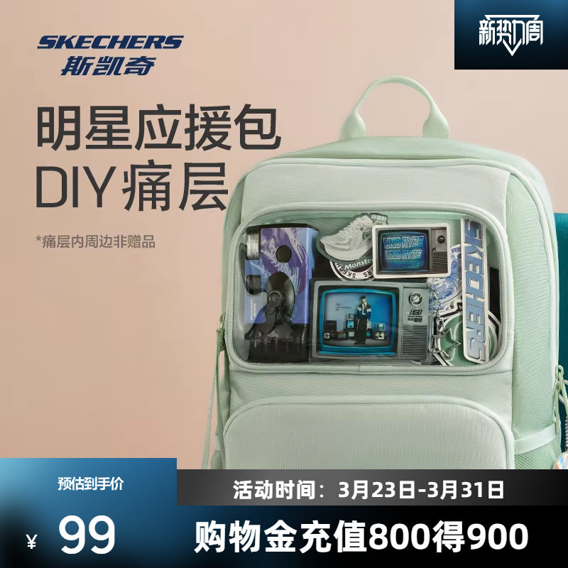 斯凯奇小痛包女包2026春季新品大容量双肩包透明背包学生书包娃包