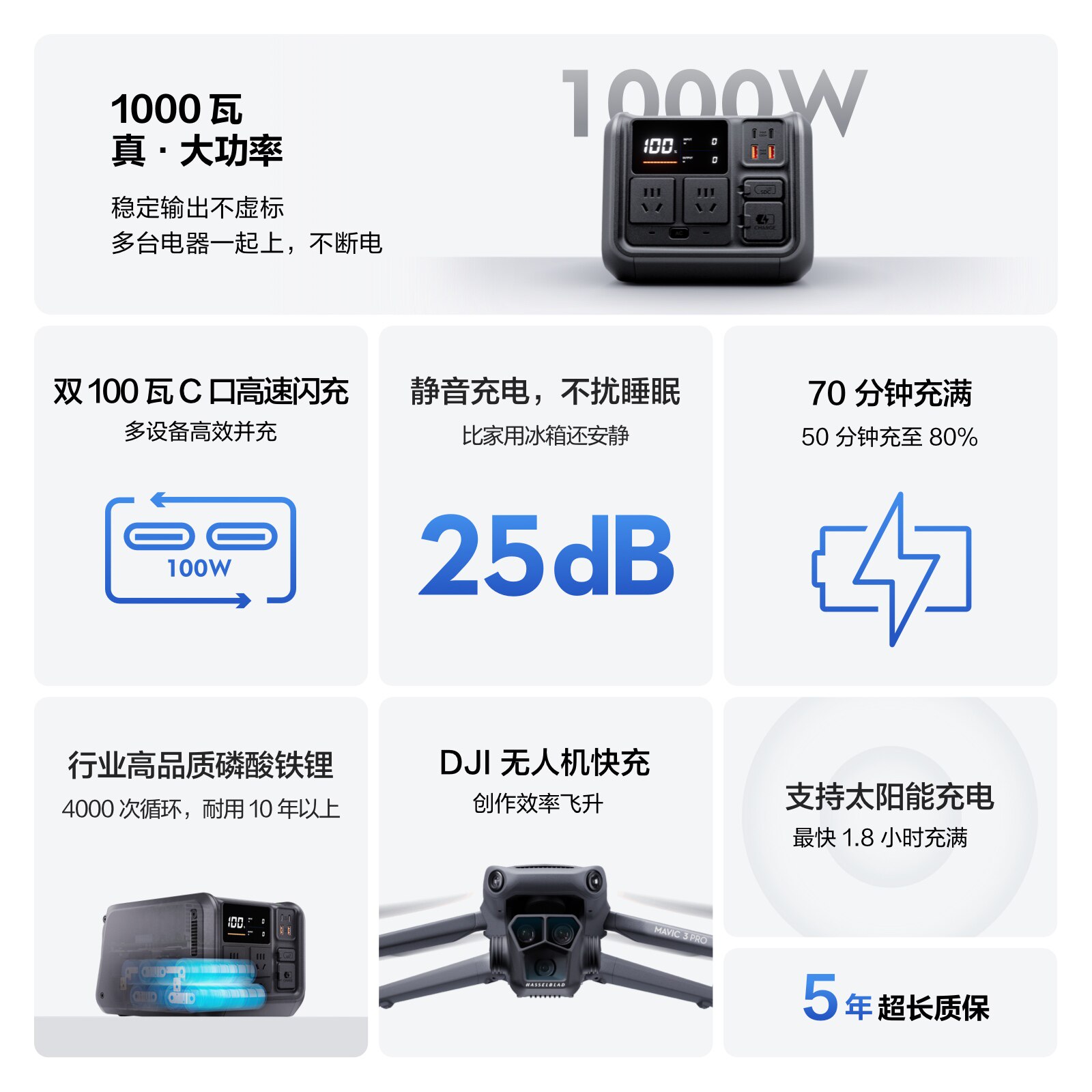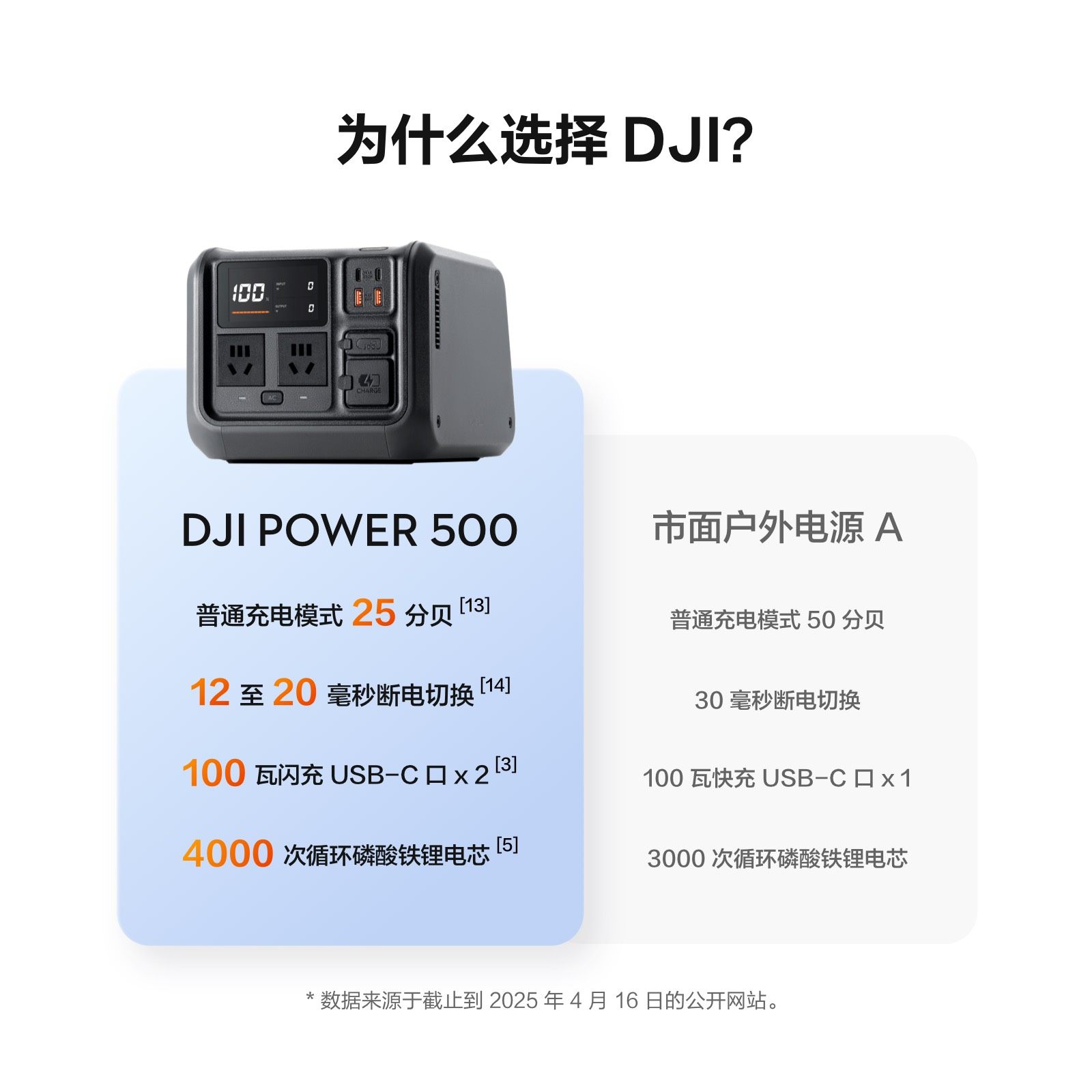 【下单有礼】DJI 大疆Power 500 便携户外移动电源 220V 1000W 自驾露营车载大功率房车应急备用磷酸铁锂