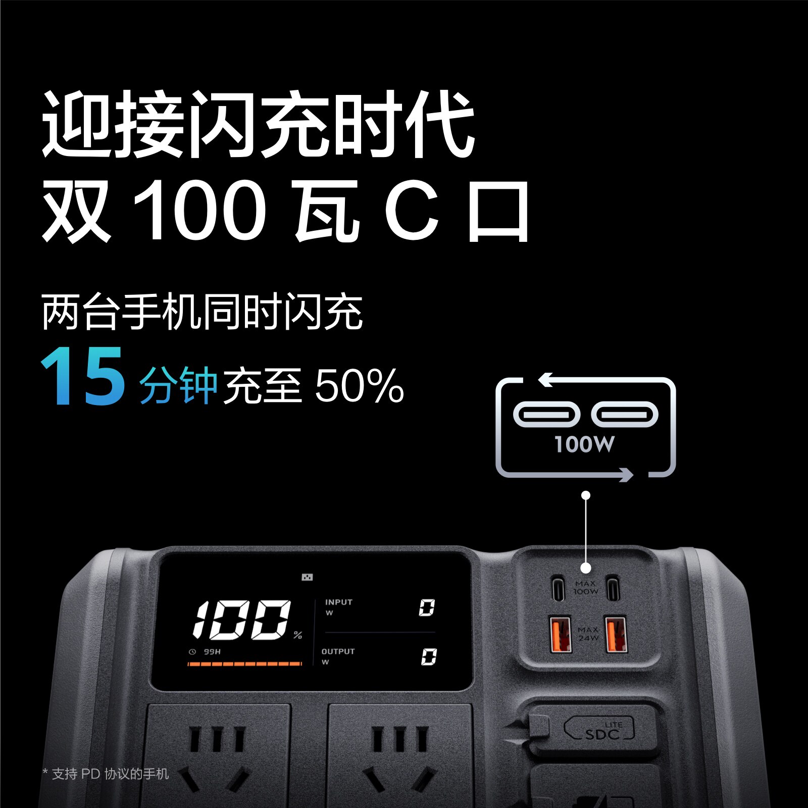 电小二户外电源1度电大容量1500W移动备用220v便携式蓄电池磷酸铁锂大功率ups不间断快充应急储能车载摆摊