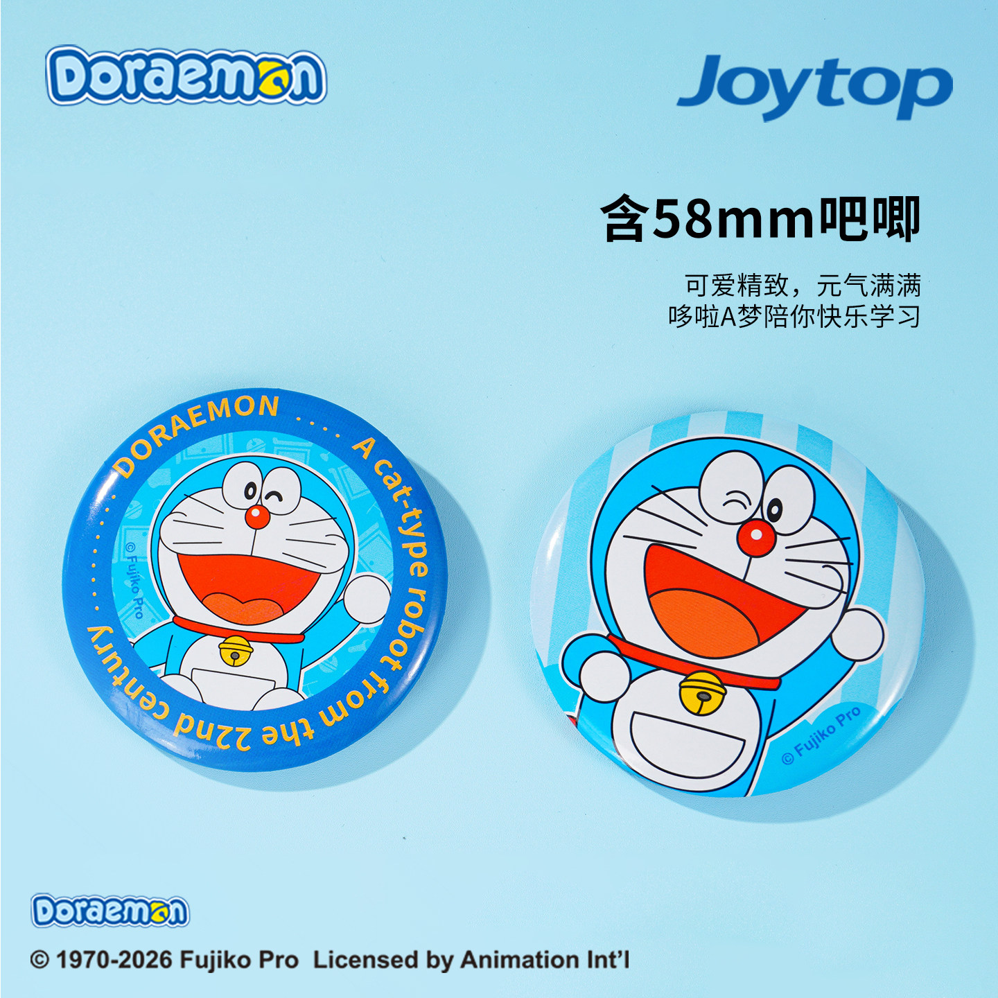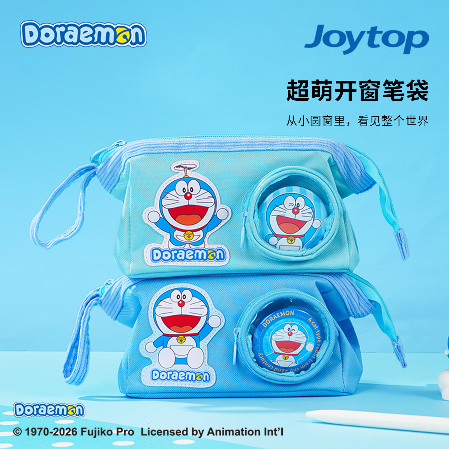 Joytop悦木哆啦A梦笔袋 正版圆形开窗卡通大容量文具收纳袋二次元风铅笔袋DIY吧唧痛包女孩男孩笔袋文具新款