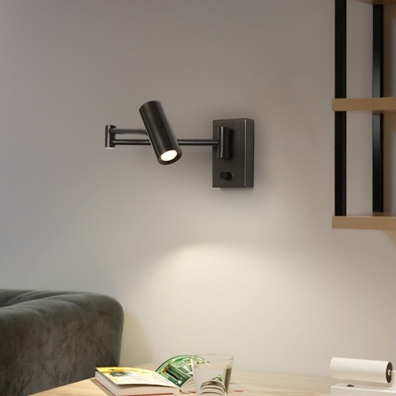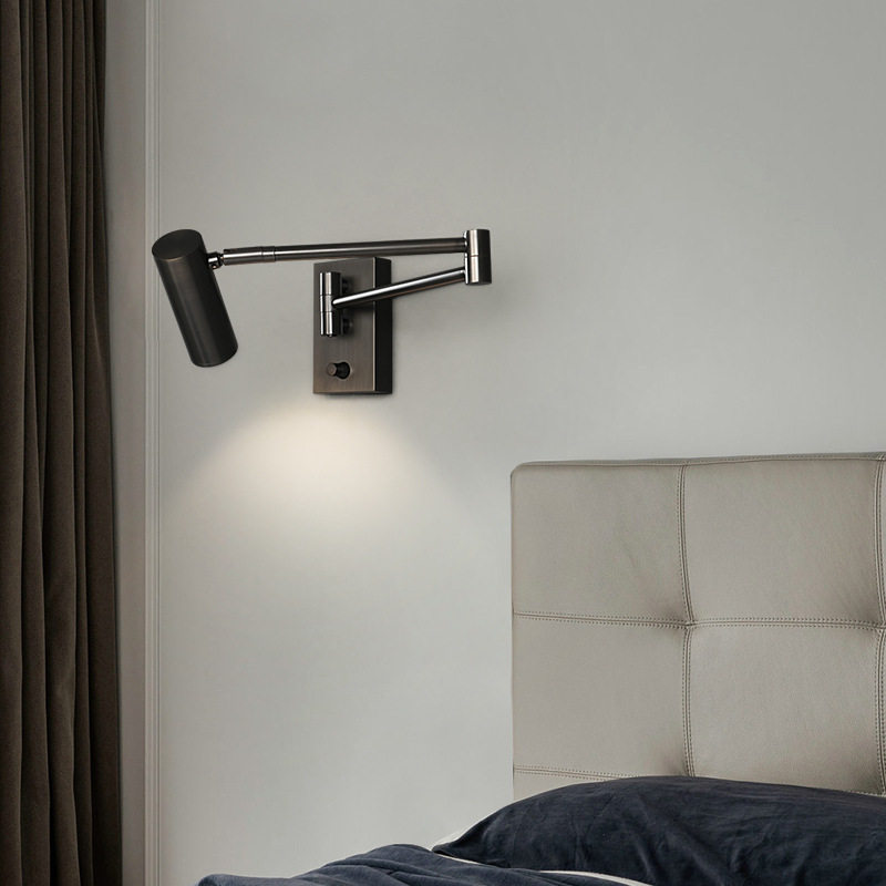 轻奢可伸缩书房壁灯长杆摇臂卧室床头客厅沙发旁阅读全铜旋转壁灯