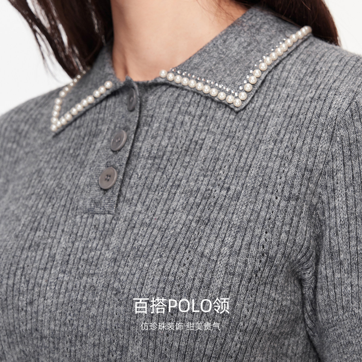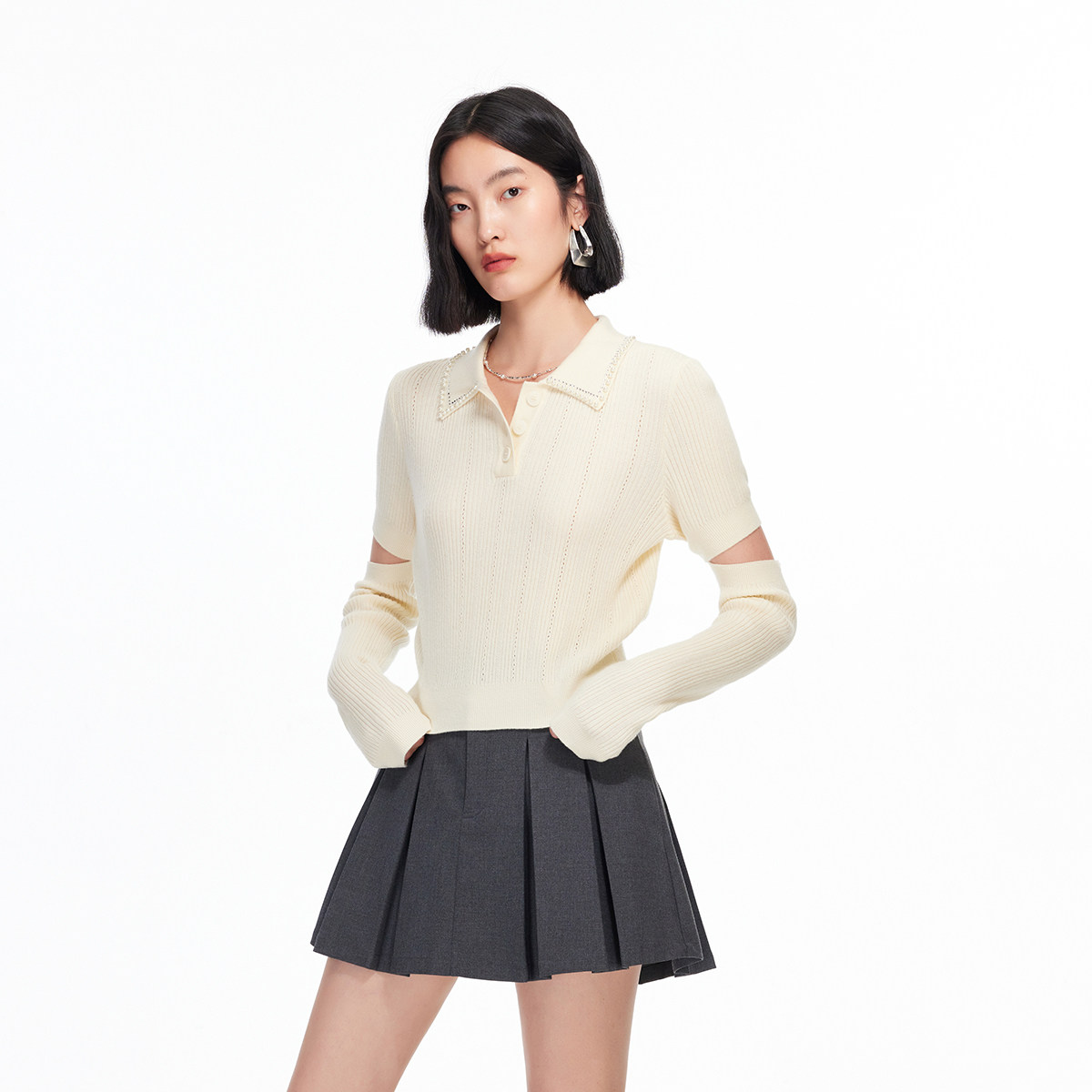 Vero Moda针织衫2026春季新款含绵羊毛可拆卸袖套钉珠POLO领百搭