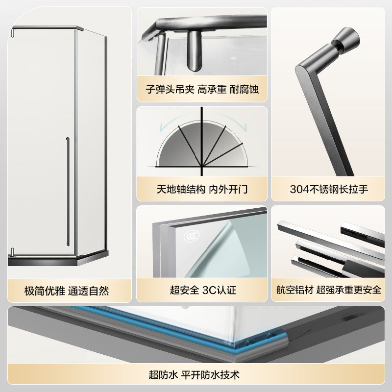 恒洁极窄淋浴房钻石型卫生间铝合金隔断干湿分离玻璃浴屏推拉门