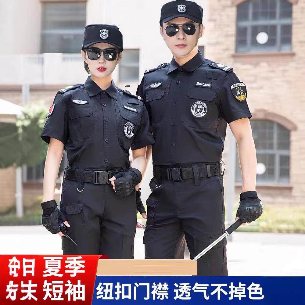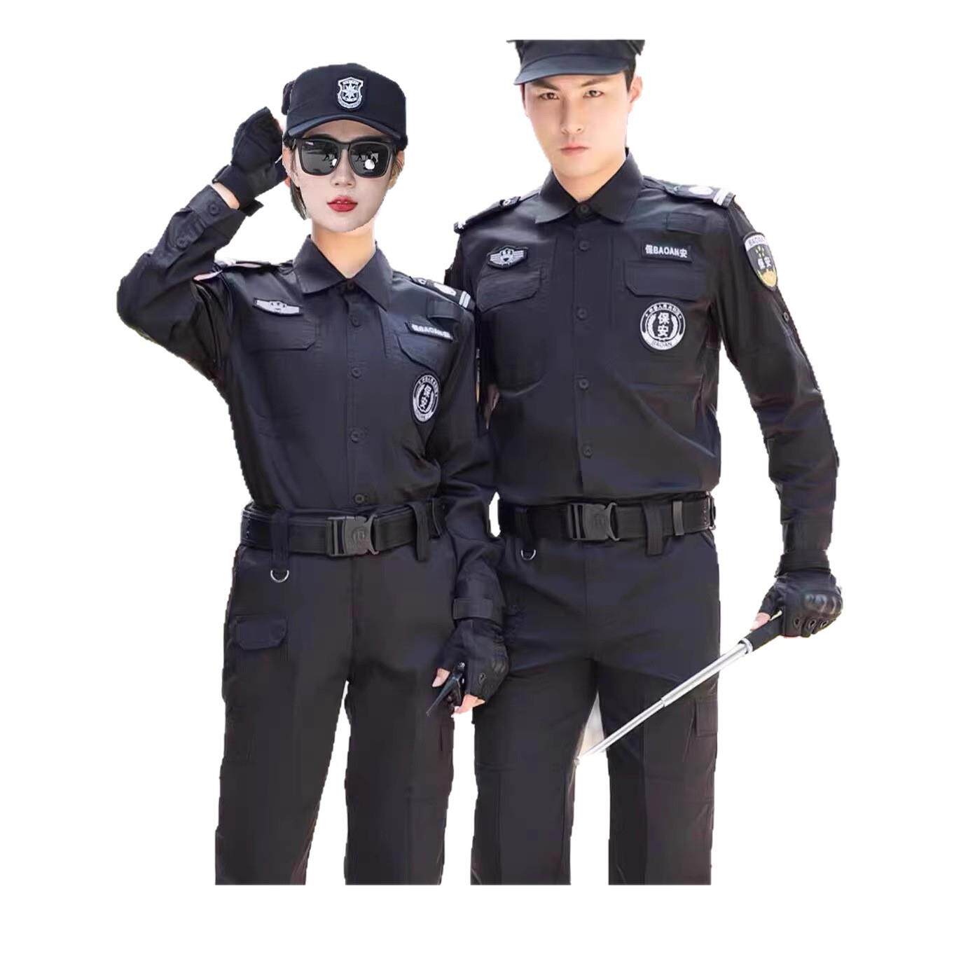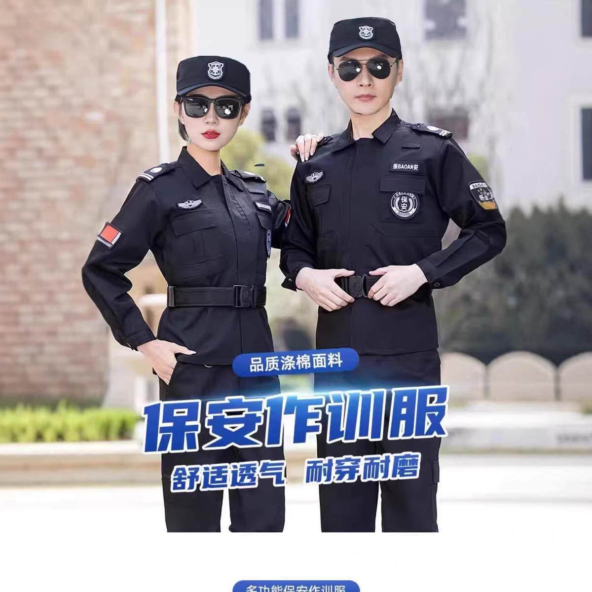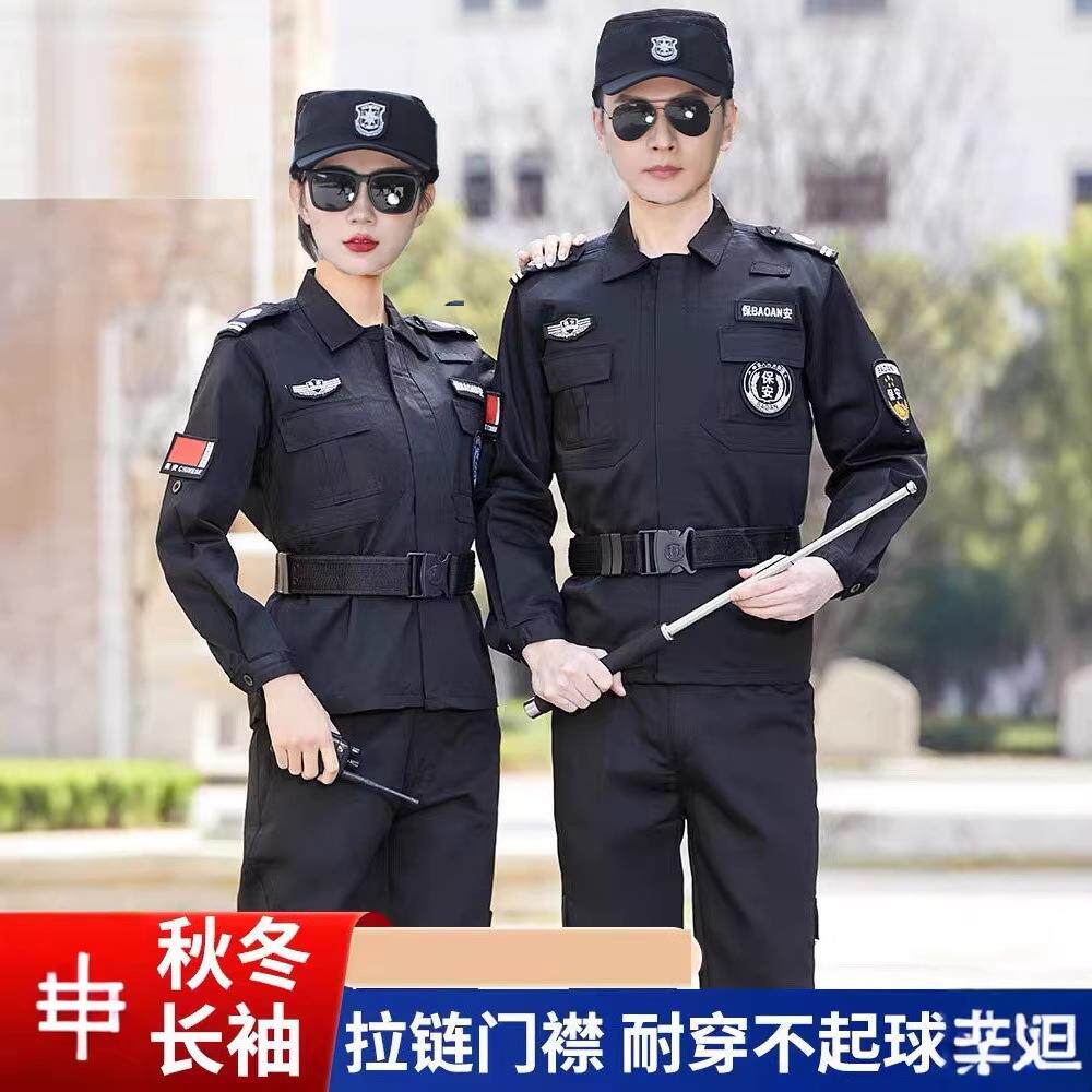 保安工作服套装男长袖秋冬款加厚黑色斜纹耐磨防静电作训制服薄款