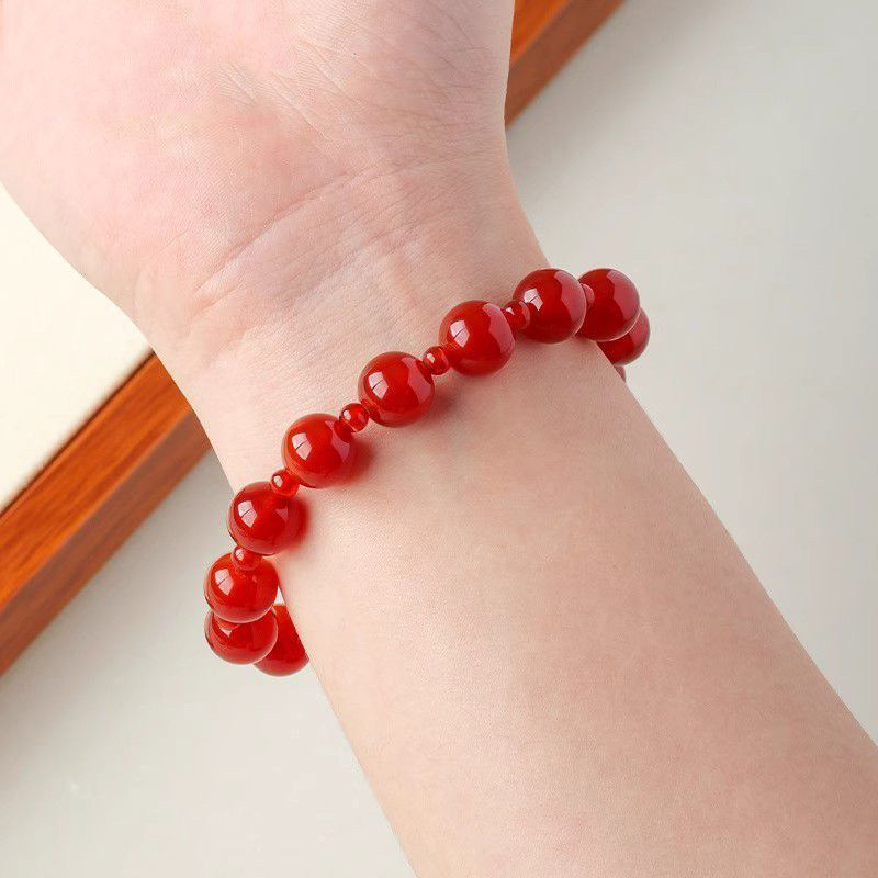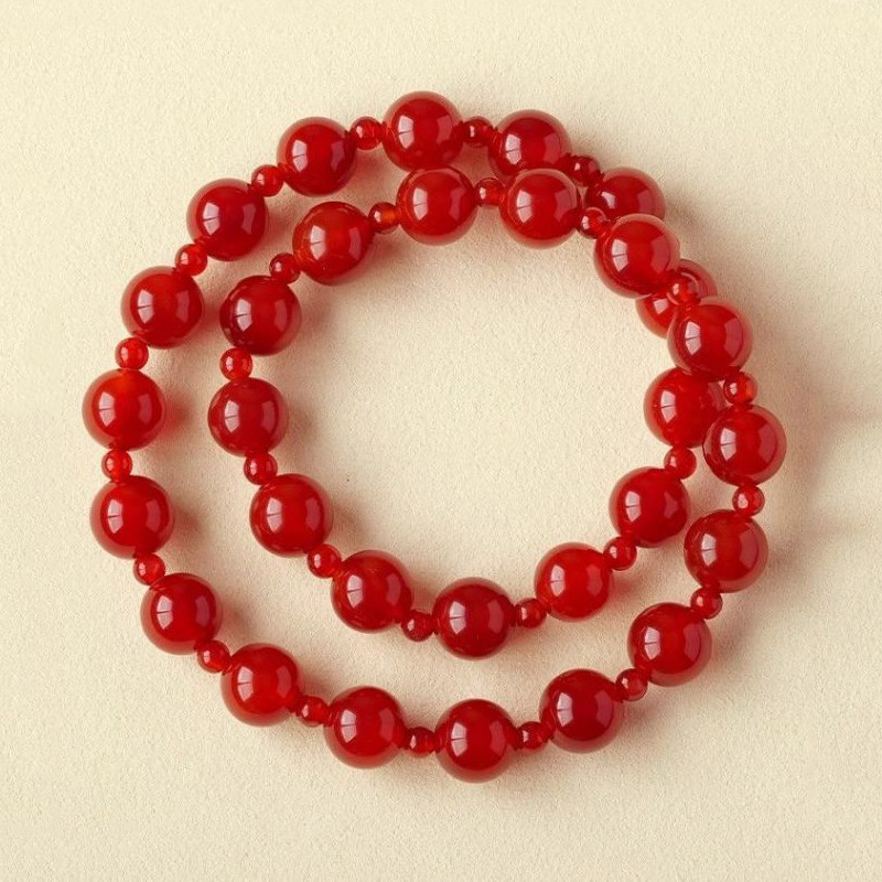 红玛瑙手链女款转运珠子玉髓佛珠手串双圈叠戴男女款情侣收藏级