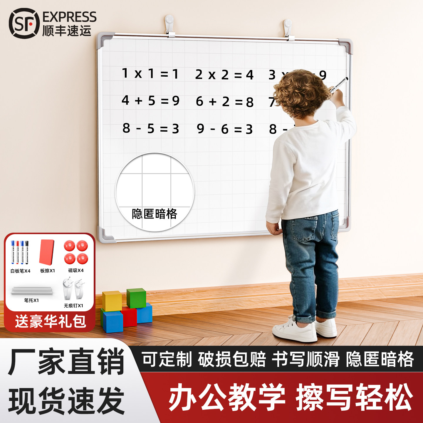 挂式双面白板磁性办公书写壁挂单面大白板黑板墙教学家用儿童涂鸦小白板可擦黑板白班写字板会议留言记事看板