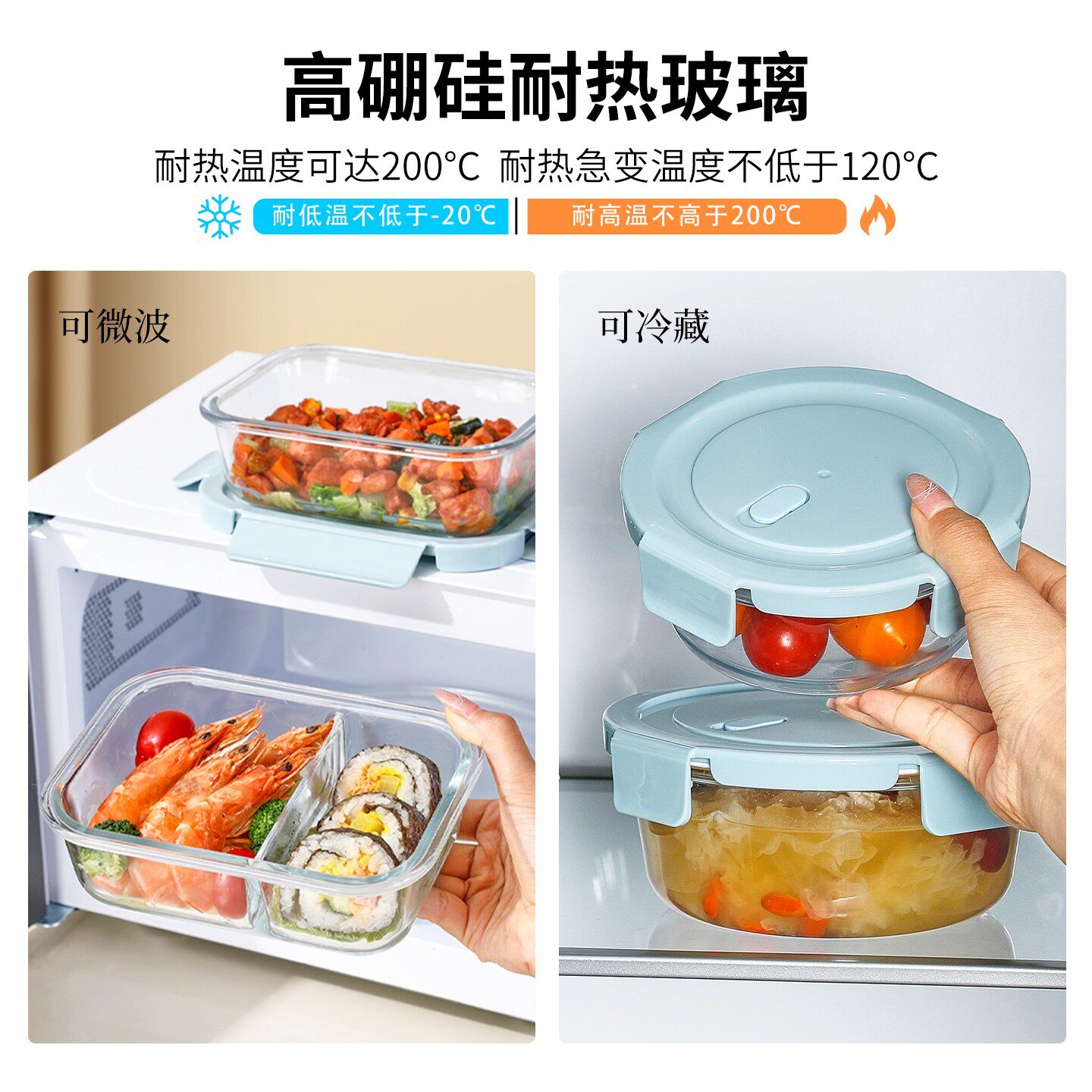 2025新款玻璃饭盒微波炉加热专用碗耐高温家用带盖上班族保鲜盒