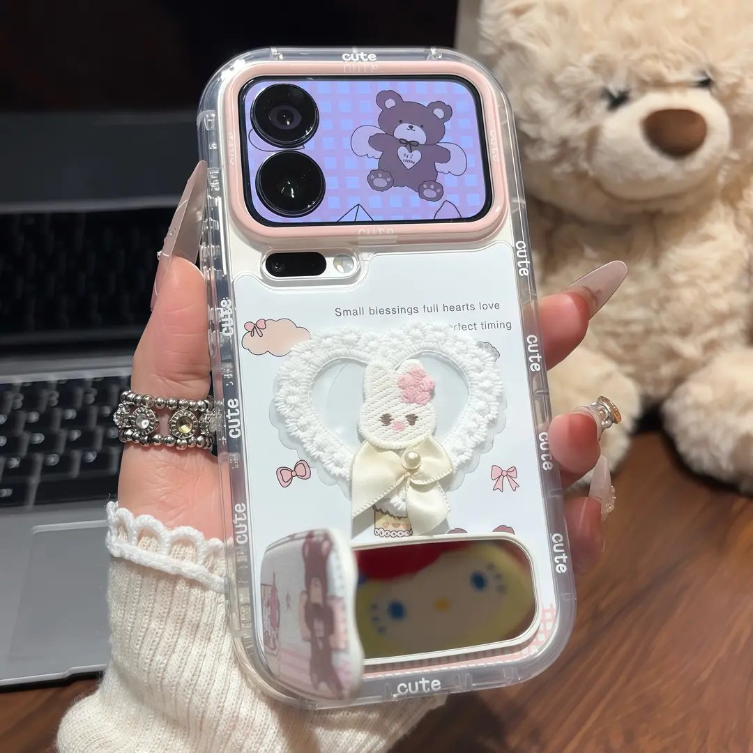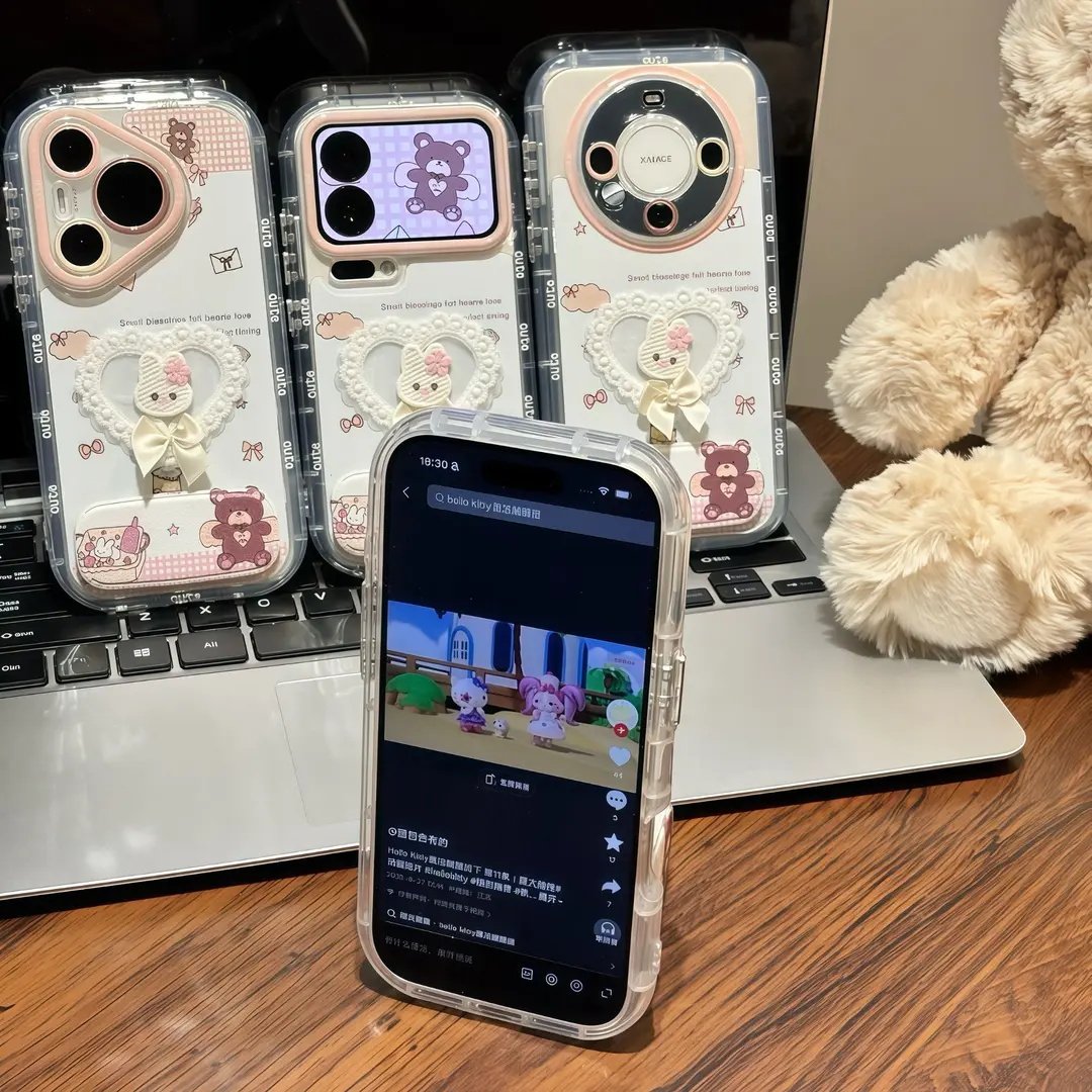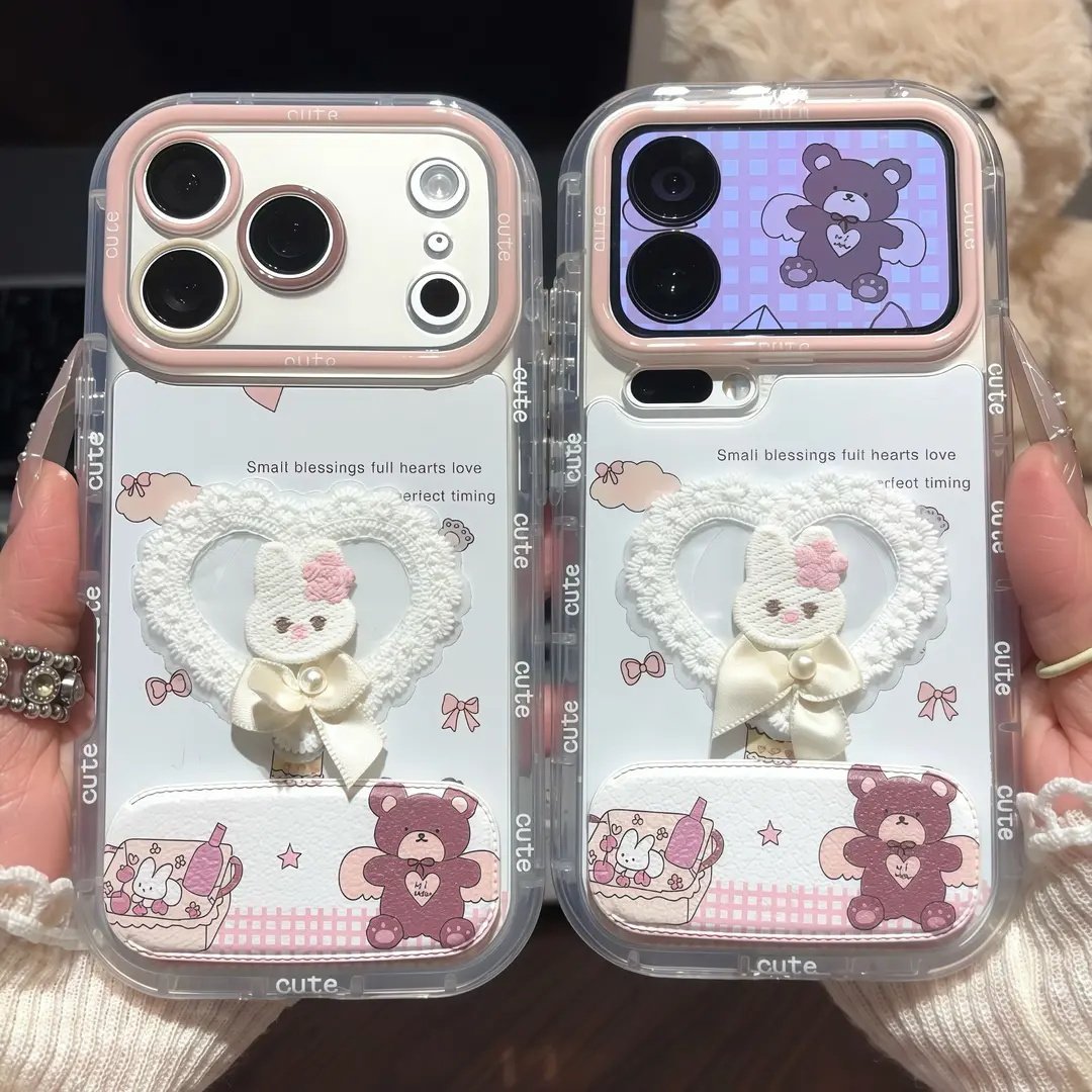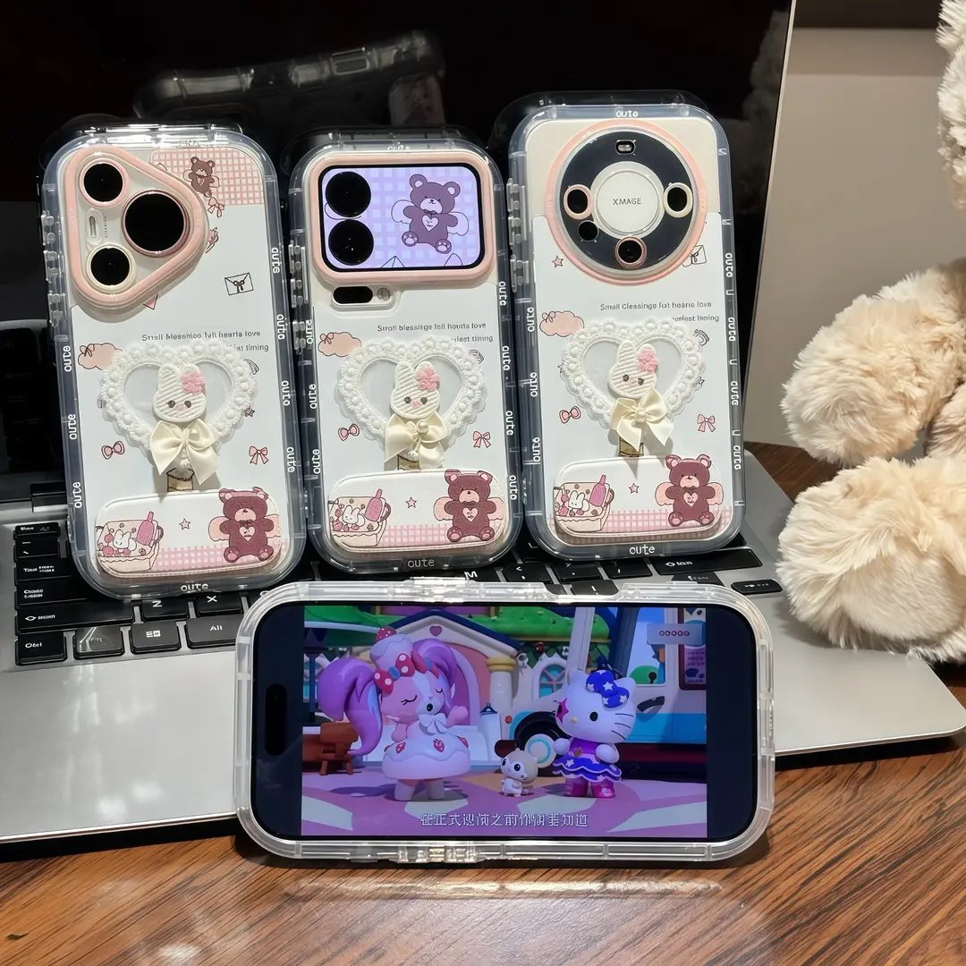 蕾丝蝴蝶结小兔支架适用苹果17手机壳iPhone16/15PROMAX新款华为PURA80可爱NOVA14全包MATE60PRO闺蜜VIVO小米